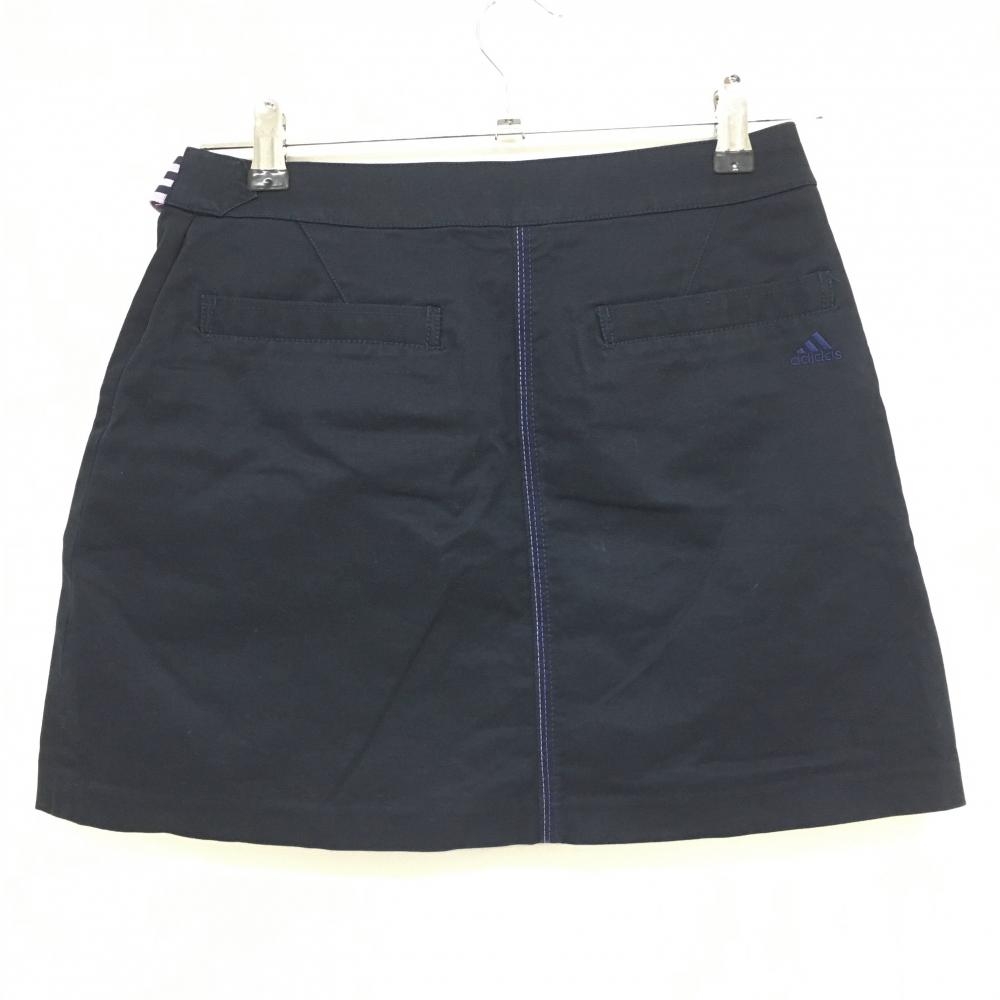 【美品】アディダス 巻きスカート ネイビー ベルトボーダー ストレッチ レディース S/P ゴルフウェア adidas