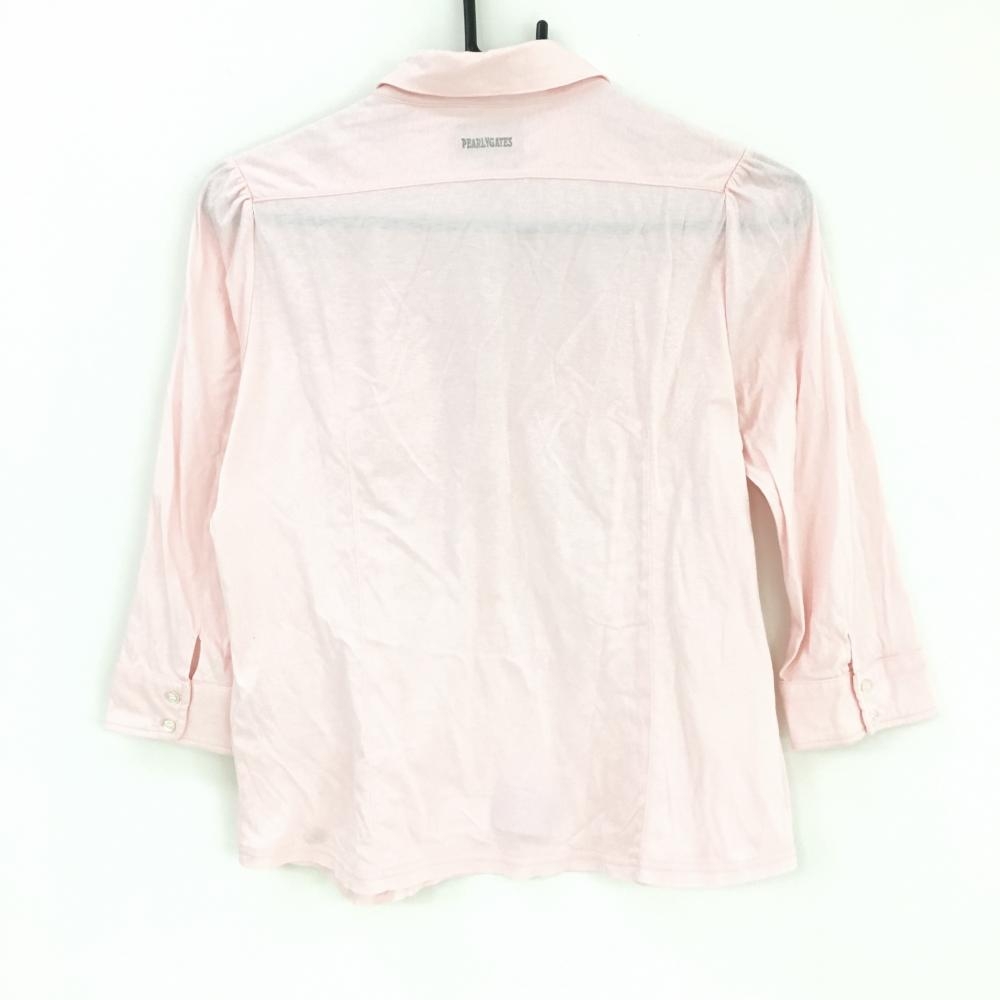 【美品】パーリーゲイツ 七分丈ポロシャツ ピンク 半端丈 胸ポケット レディース 2(L) ゴルフウェア PEARLY GATES