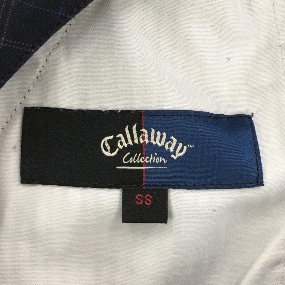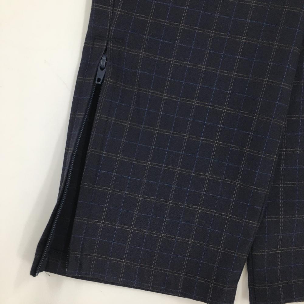 【美品】キャロウェイ パンツ ダークネイビー×ライトブラウン チェック ティー装着可 裾ジップ レディース SS ゴルフウェア Callaway