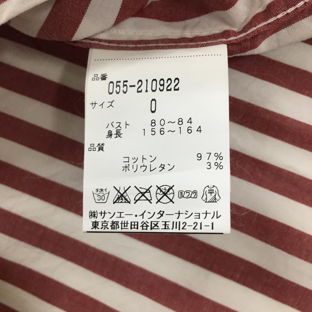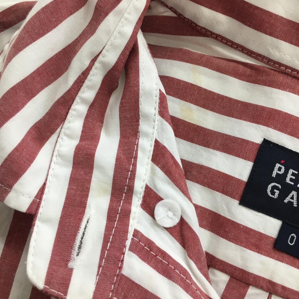 【美品】パーリーゲイツ 長袖シャツ 白×ボルドー ストライプ ボタンダウン レディース 0(S) ゴルフウェア PEARLY GATES