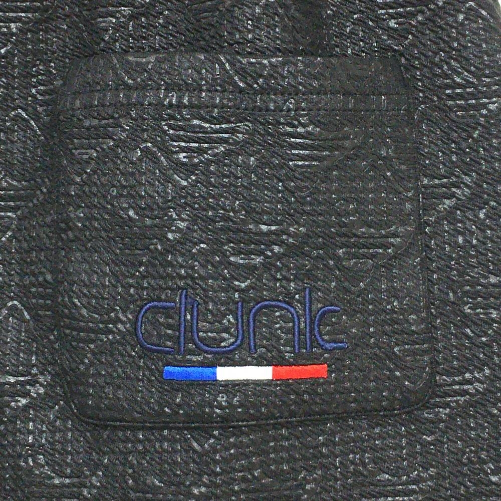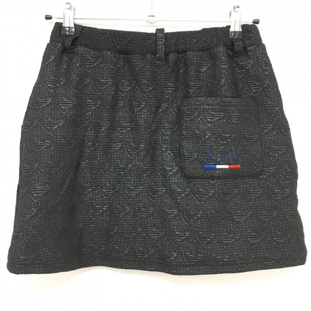 【超美品】クランク スカート 黒 ロゴ×ストライプ総柄 サッカー生地 ウエストゴム レディース S ゴルフウェア CLUNK