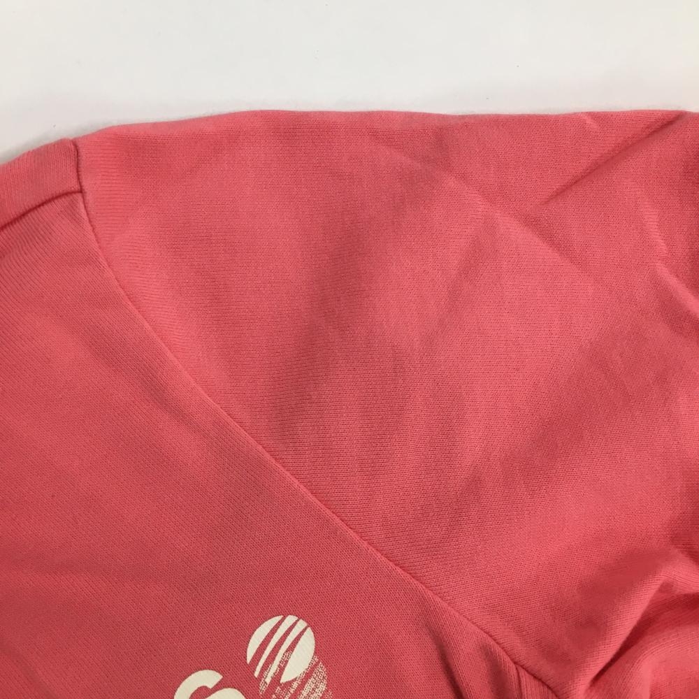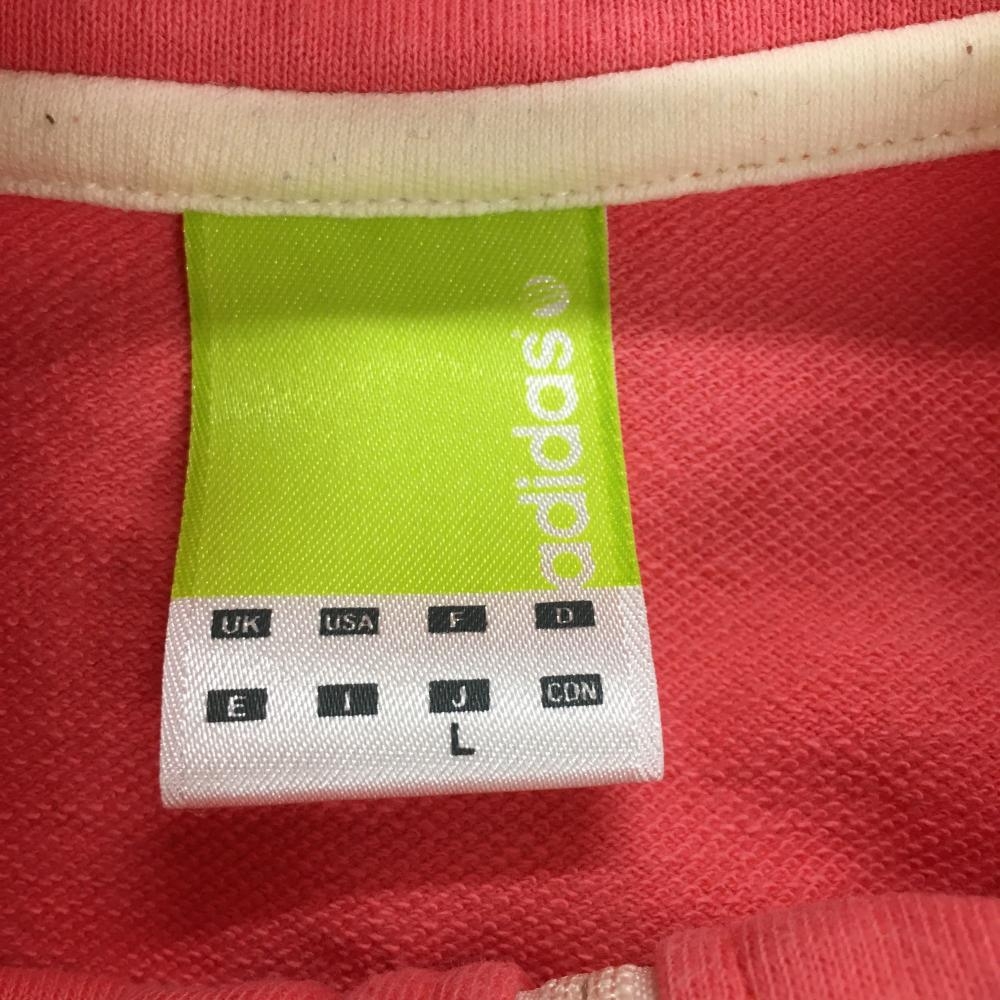 アディダス 半袖ジャケット ピンク×白 ロゴプリント フルジップ レディース L ゴルフウェア adidas