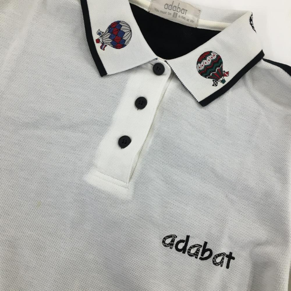 アダバット 長袖ポロシャツ 白×黒 気球刺しゅう レディース Ⅱ(L) ゴルフウェア adabat