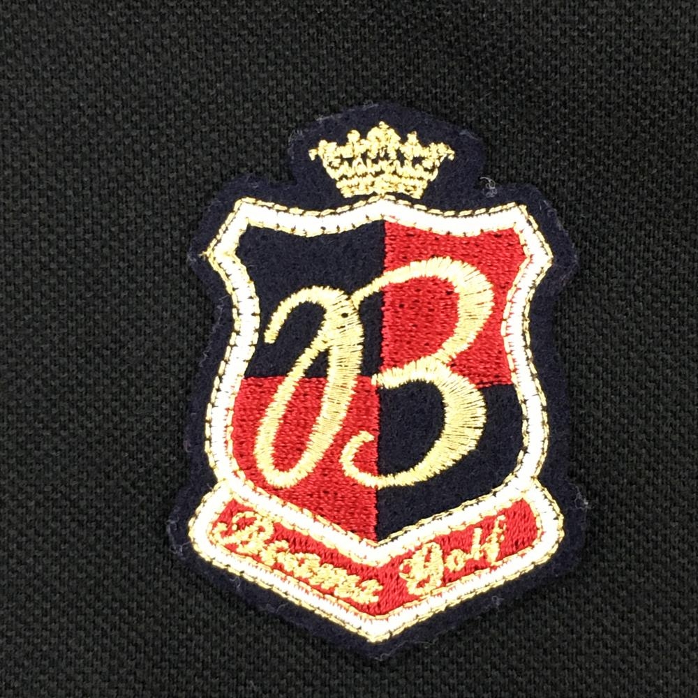 ビームスゴルフ 長袖ポロシャツ 黒×グレー 袖ロゴ刺しゅう ワッペン レディース M ゴルフウェア BEAMS GOLF