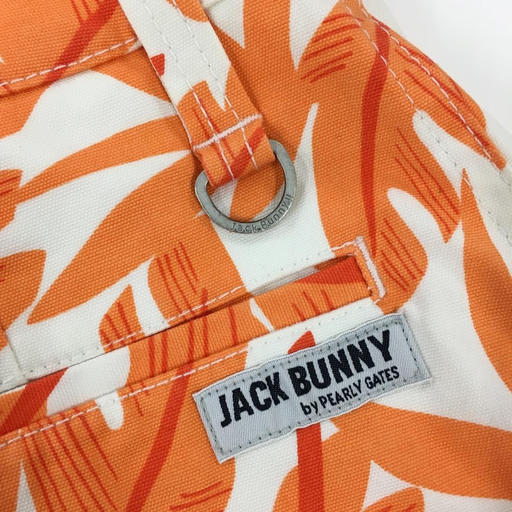 【超美品】ジャックバニー スカート アイボリー×オレンジ リーフ総柄 ストレッチ レディース 2(L) ゴルフウェア Jack Bunny