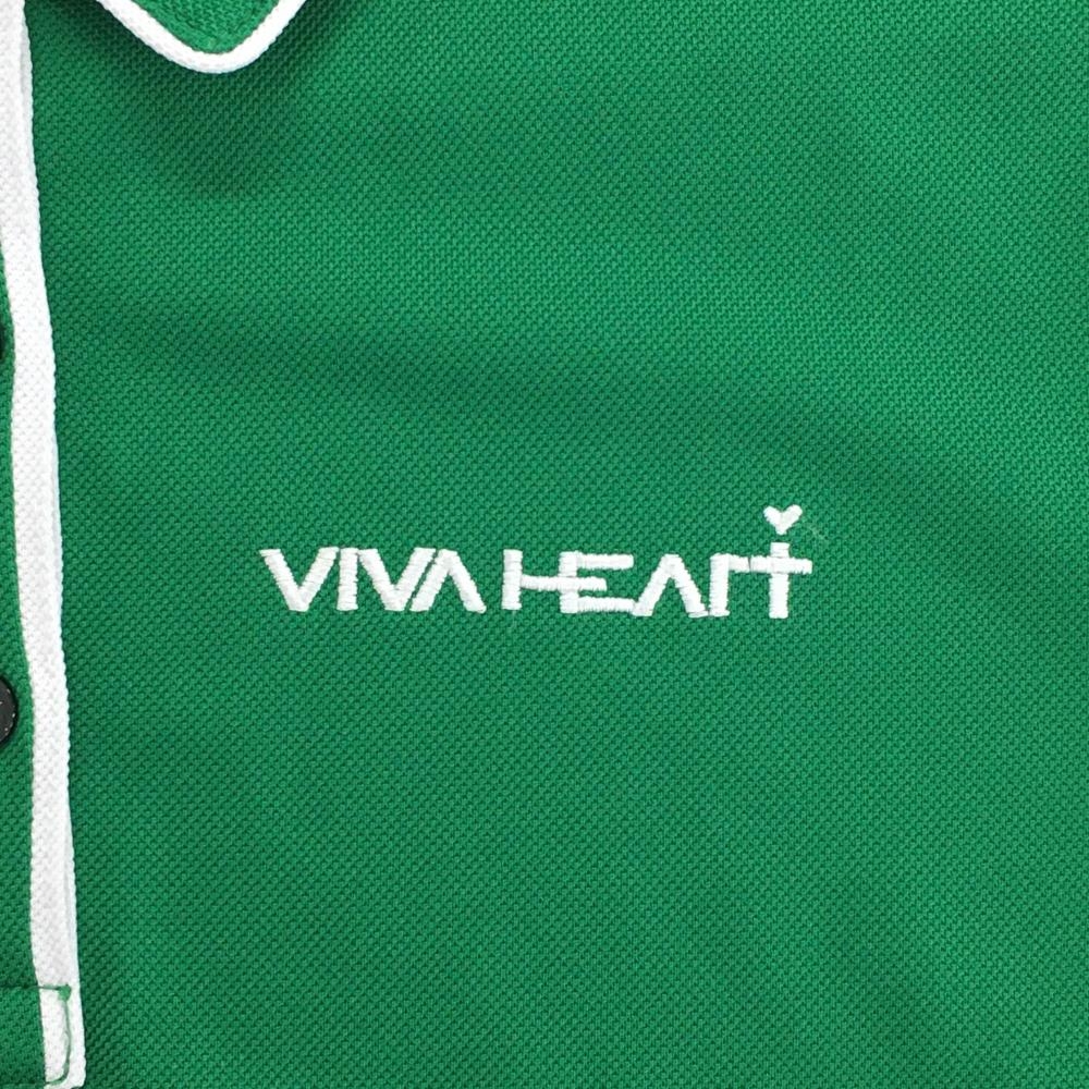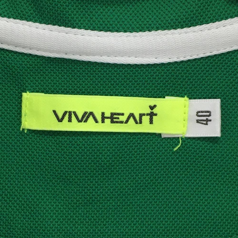 【超美品】ビバハート 半袖ポロシャツ グリーン×白 パイピング ロゴ刺しゅう レディース 40 ゴルフウェア VIVA HEART