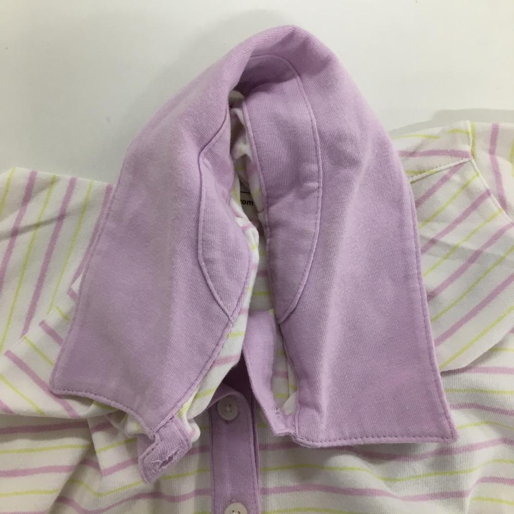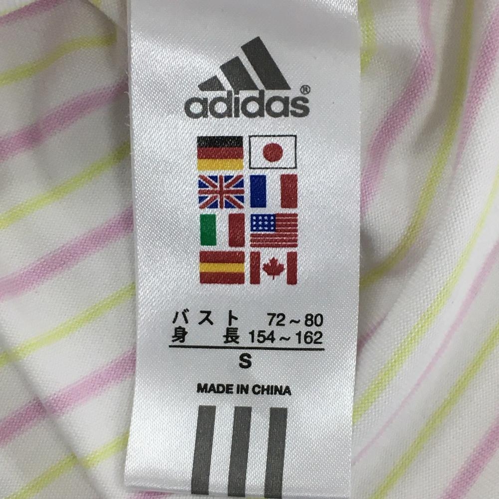 アディダス 半袖ポロシャツ 白×ライトパープル ボーダー柄 ロゴ刺しゅう レディース S/P ゴルフウェア adidas