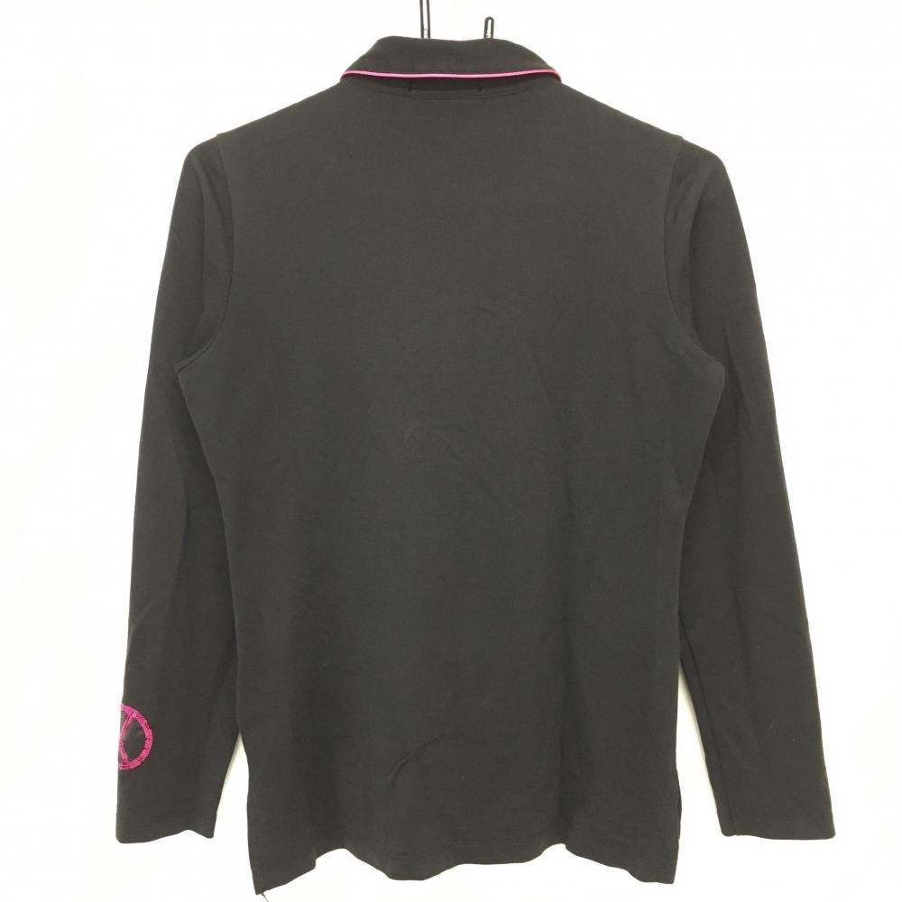 ダンスウィズドラゴン 長袖ポロシャツ 黒×ピンク ニコちゃん スマイル レディース 2(M) ゴルフウェア Dance With Dragon