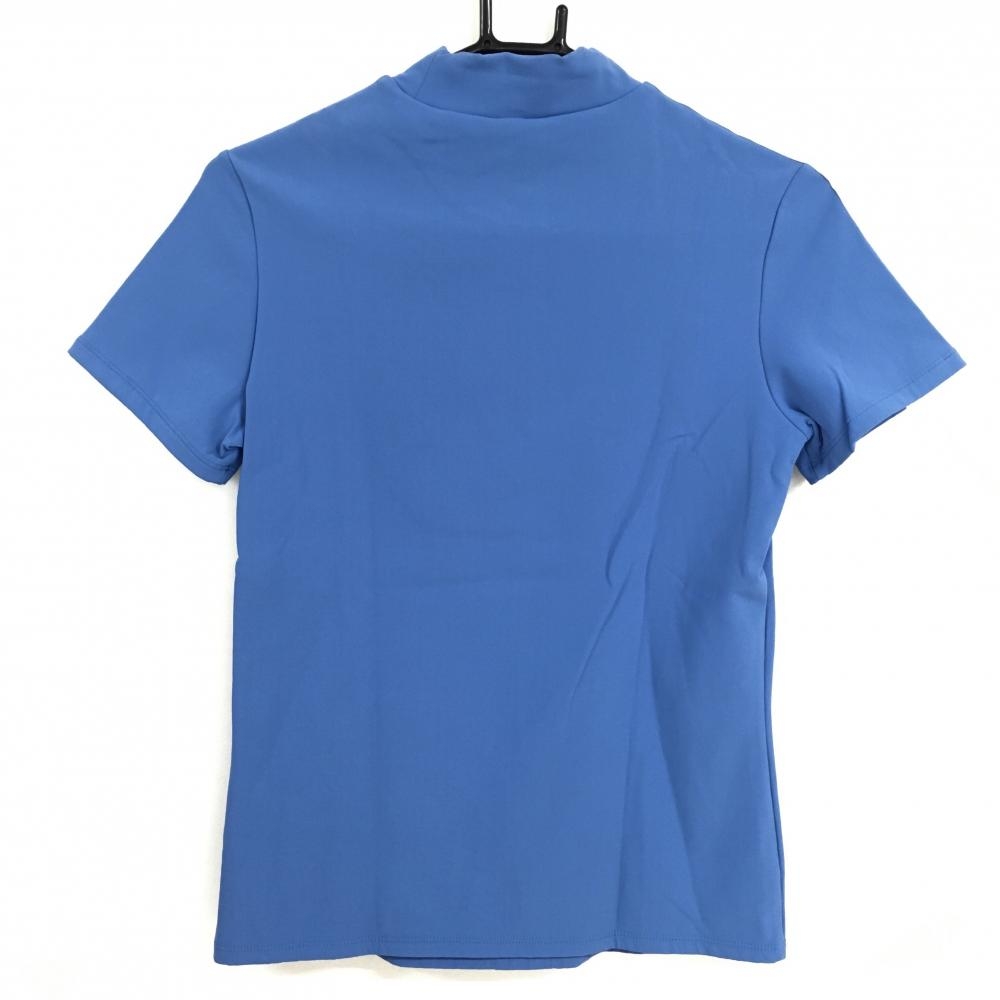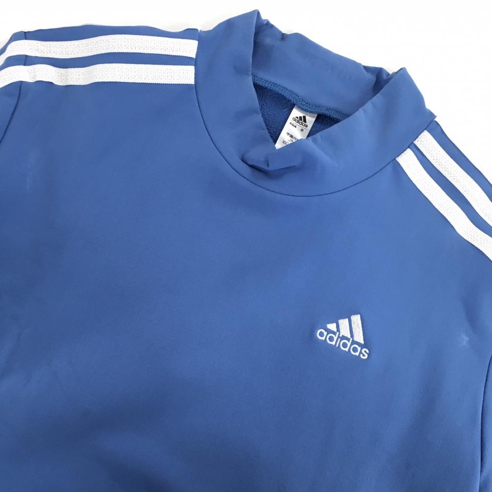 【美品】アディダス 半袖ハイネックシャツ ライトブルー×白 肩3ライン ネック・肩汚れ レディース M ゴルフウェア 2021年モデル adidas