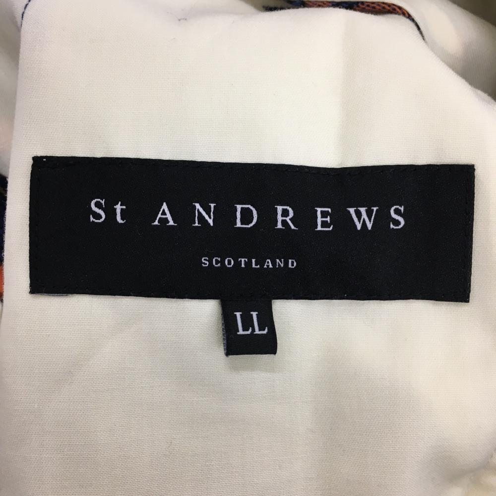 【超美品】セントアンドリュース パンツ ネイビー×オレンジ チェック 薄手 メンズ LL ゴルフウェア St ANDREWS