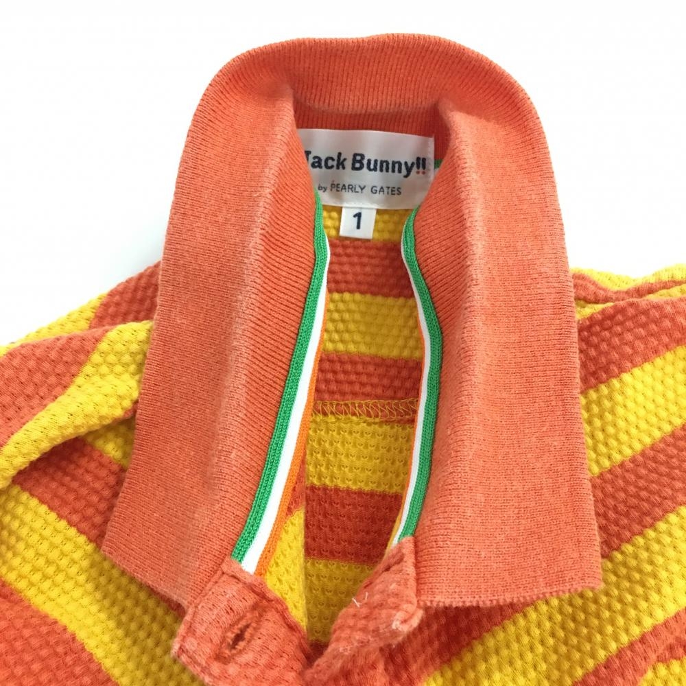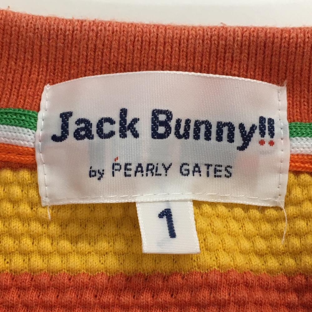 ジャックバニー 長袖ポロシャツ レッド系×イエロー ボーダー 凹凸生地 レディース 1(M) ゴルフウェア Jack Bunny