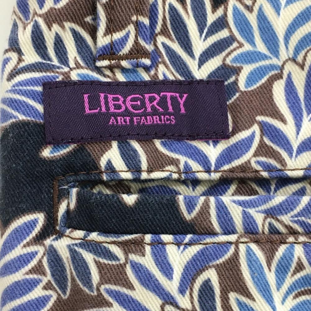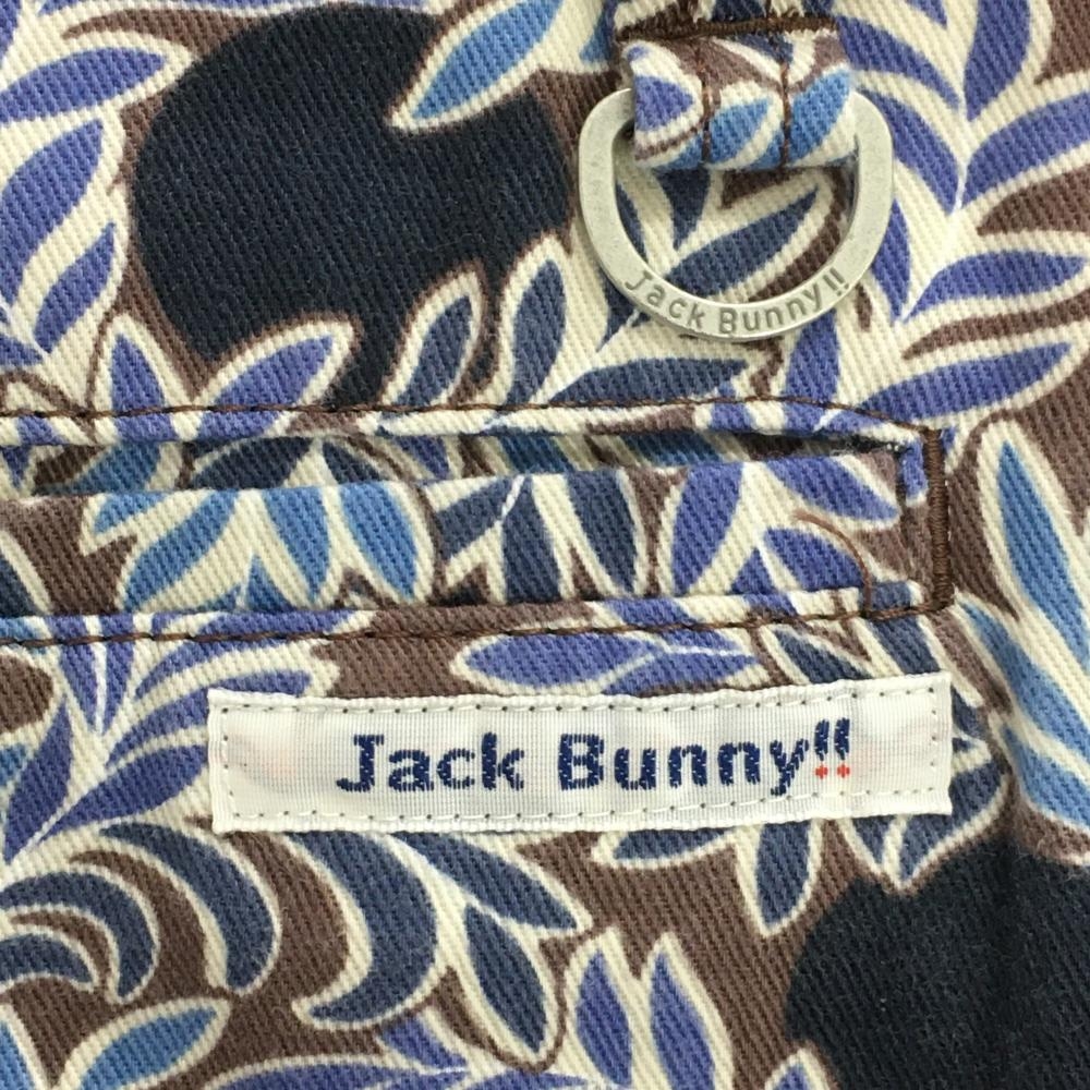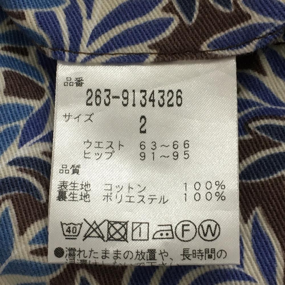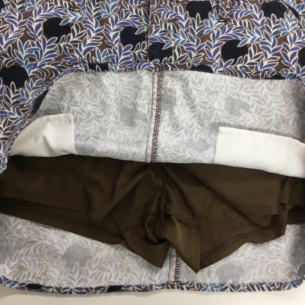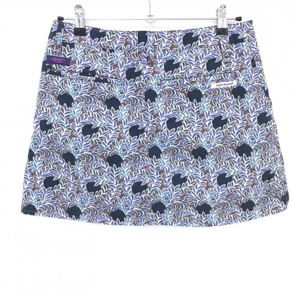 【美品】ジャックバニー×LIBERTY スカート ブラウン×ブルー リーフ柄 ドット レディース 2(L) ゴルフウェア Jack Bunny