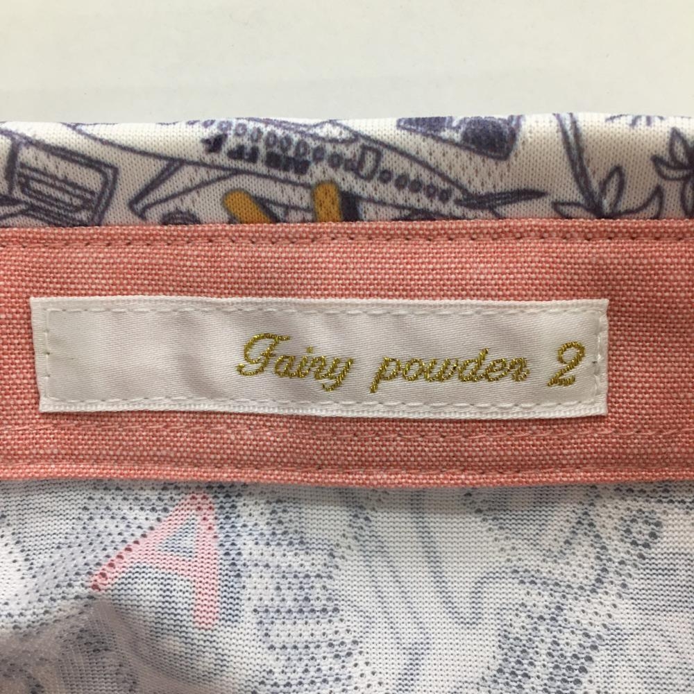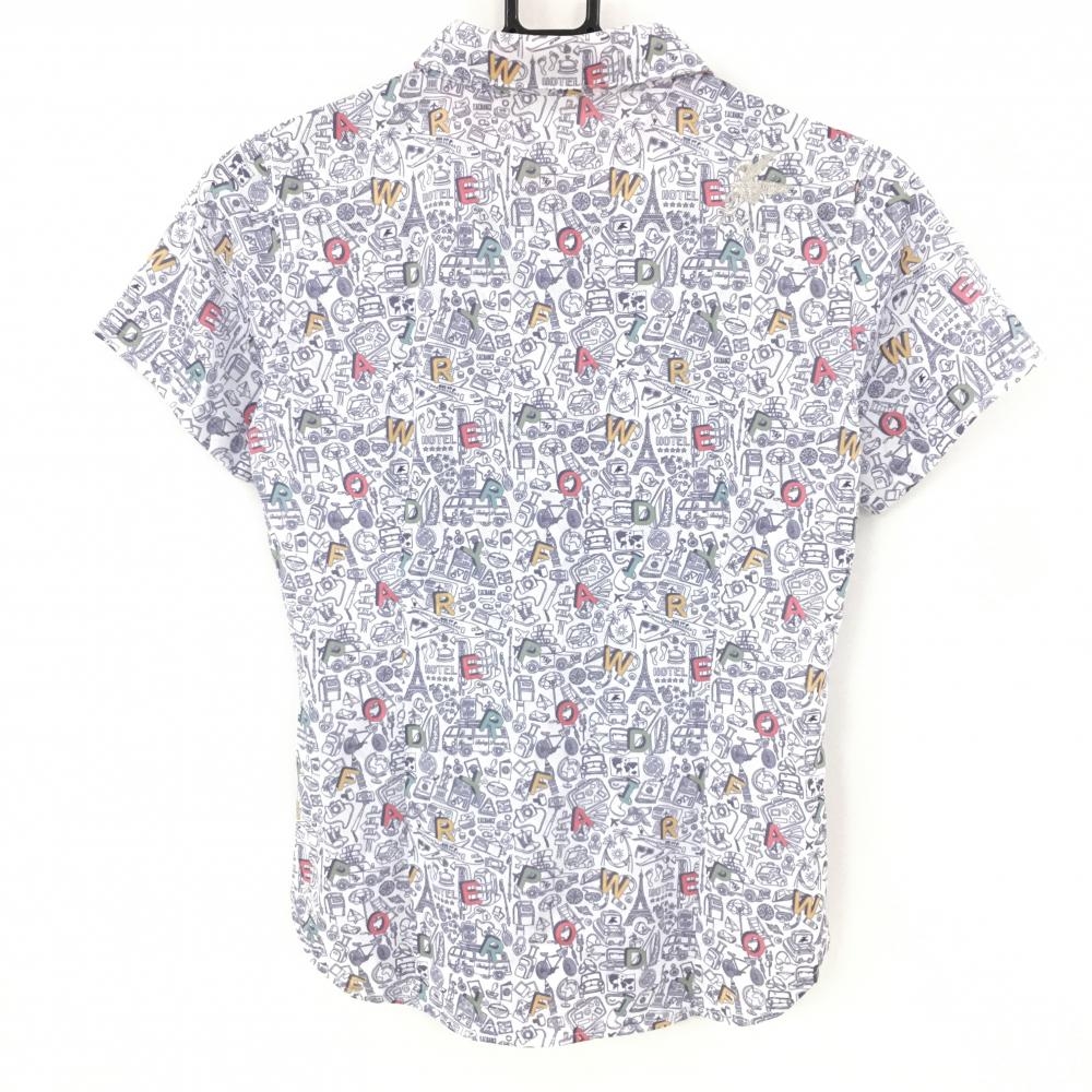 【美品】フェアリーパウダー 半袖ポロシャツ 白×ネイビー 総柄 ロゴ刺しゅう レディース 2(M) ゴルフウェア FAIRY POWDER