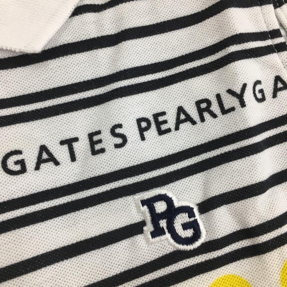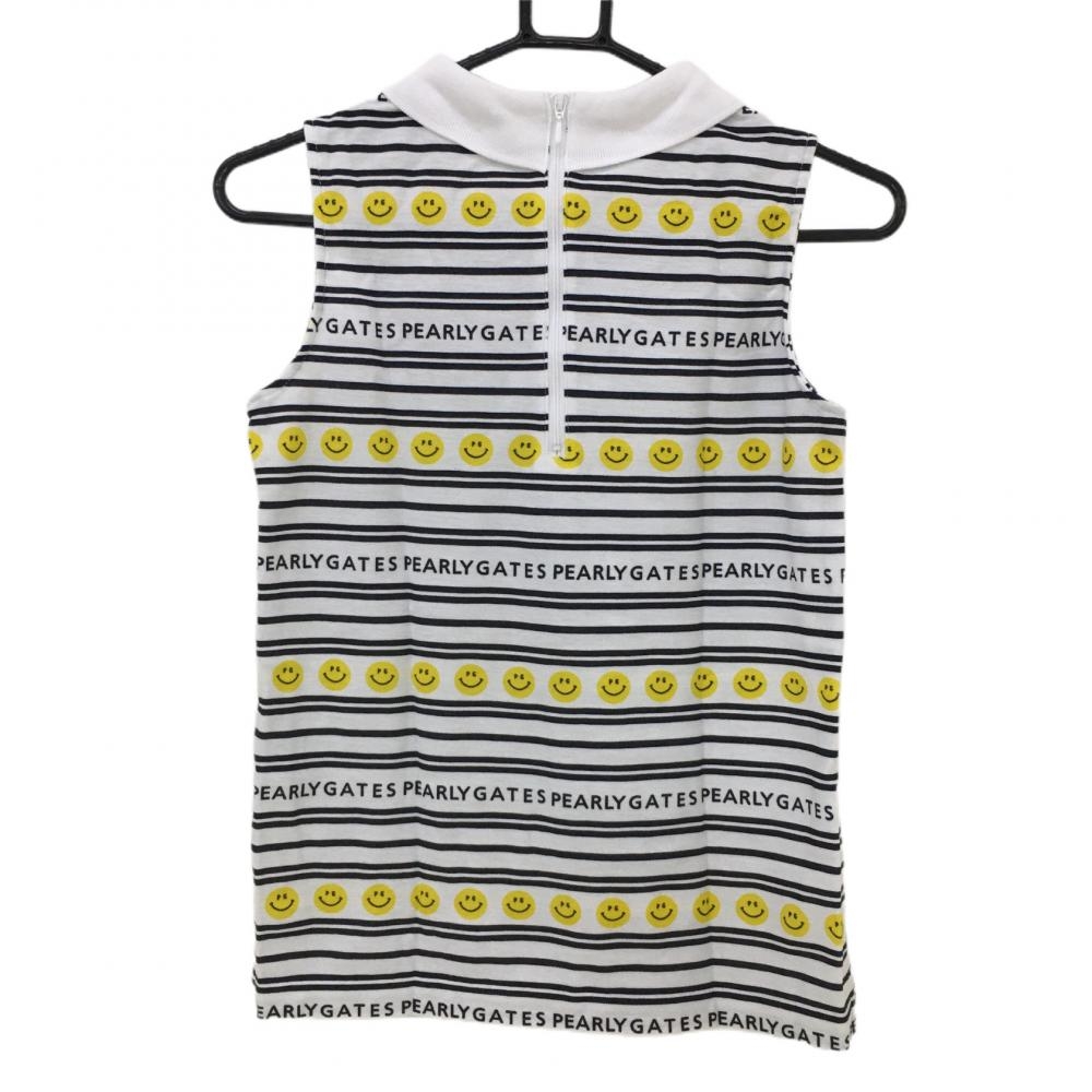 【超美品】パーリーゲイツ ノースリーブポロシャツ 白×黒 ボーダー ニコちゃん スマイル レディース 00(XS) ゴルフウェア PEARLY GATES