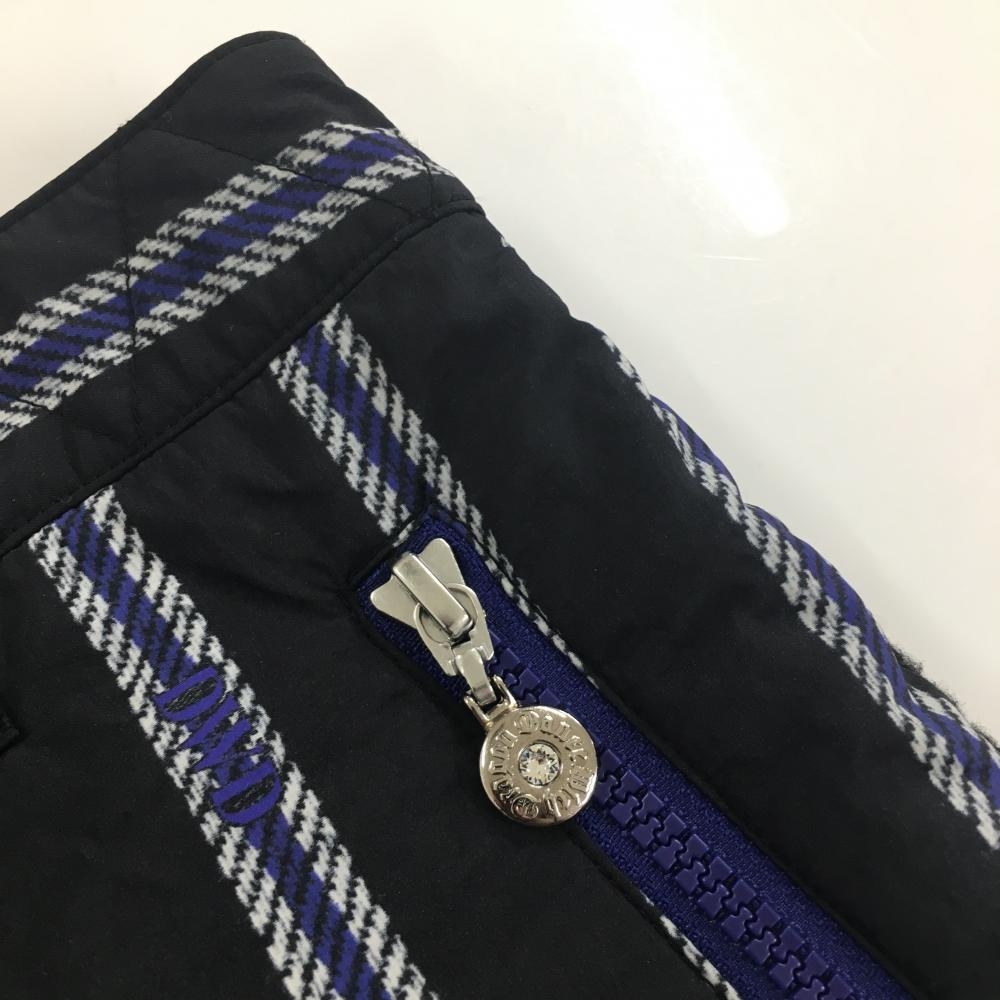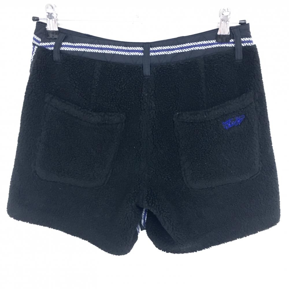 【美品】ダンスウィズドラゴン 中綿ショートパンツ 黒×ブルー ストライプ ボア レディース 2(M) ゴルフウェア Dance With Dragon