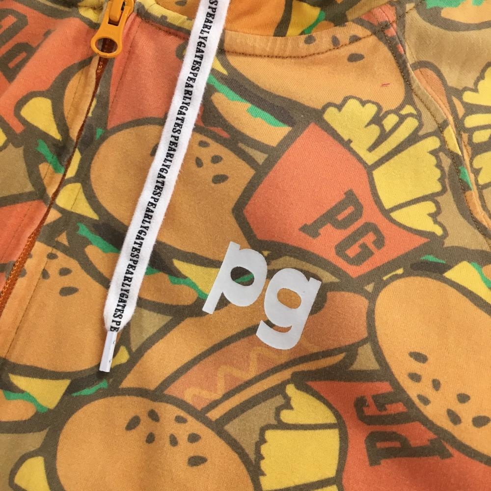 【美品】パーリーゲイツ ジップパーカー オレンジ×レッド ハンバーガー柄 ポテト柄 レディース 1(M) ゴルフウェア PEARLY GATES