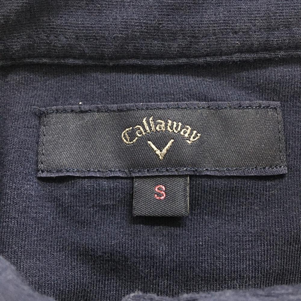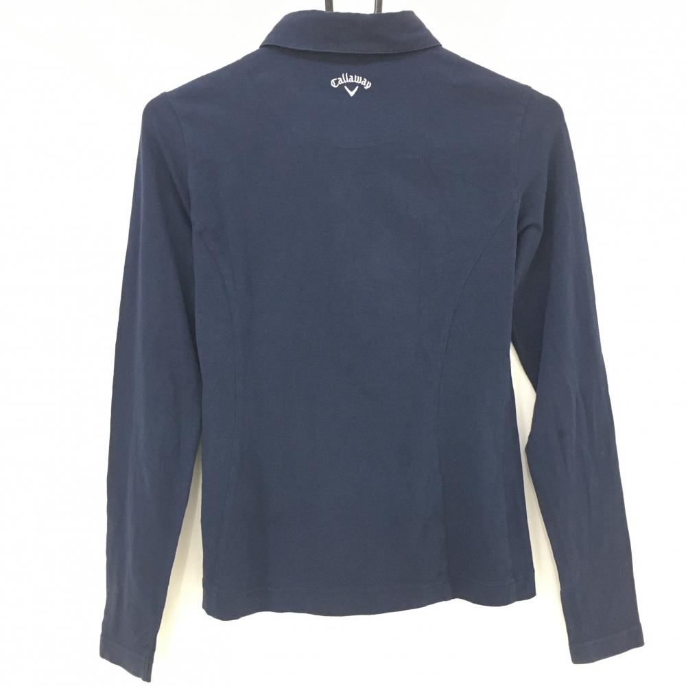 【美品】キャロウェイ 長袖ポロシャツ ネイビー×白 ロゴ刺しゅう ストレッチ レディース S ゴルフウェア Callaway