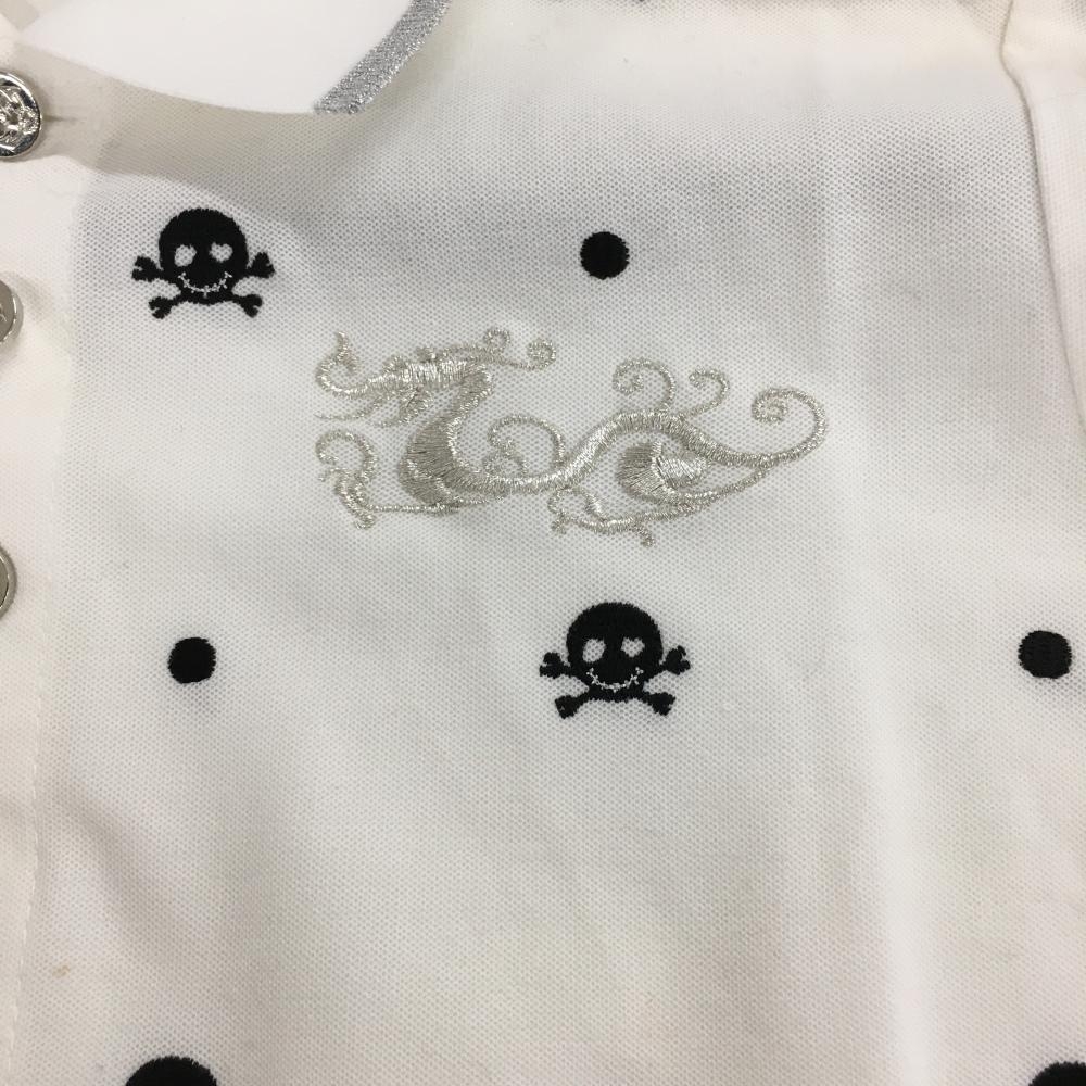 ダンスウィズドラゴン 半袖ポロシャツ 白×黒 スカル 刺しゅう柄 ドット レディース 2(M) ゴルフウェア Dance With Dragon