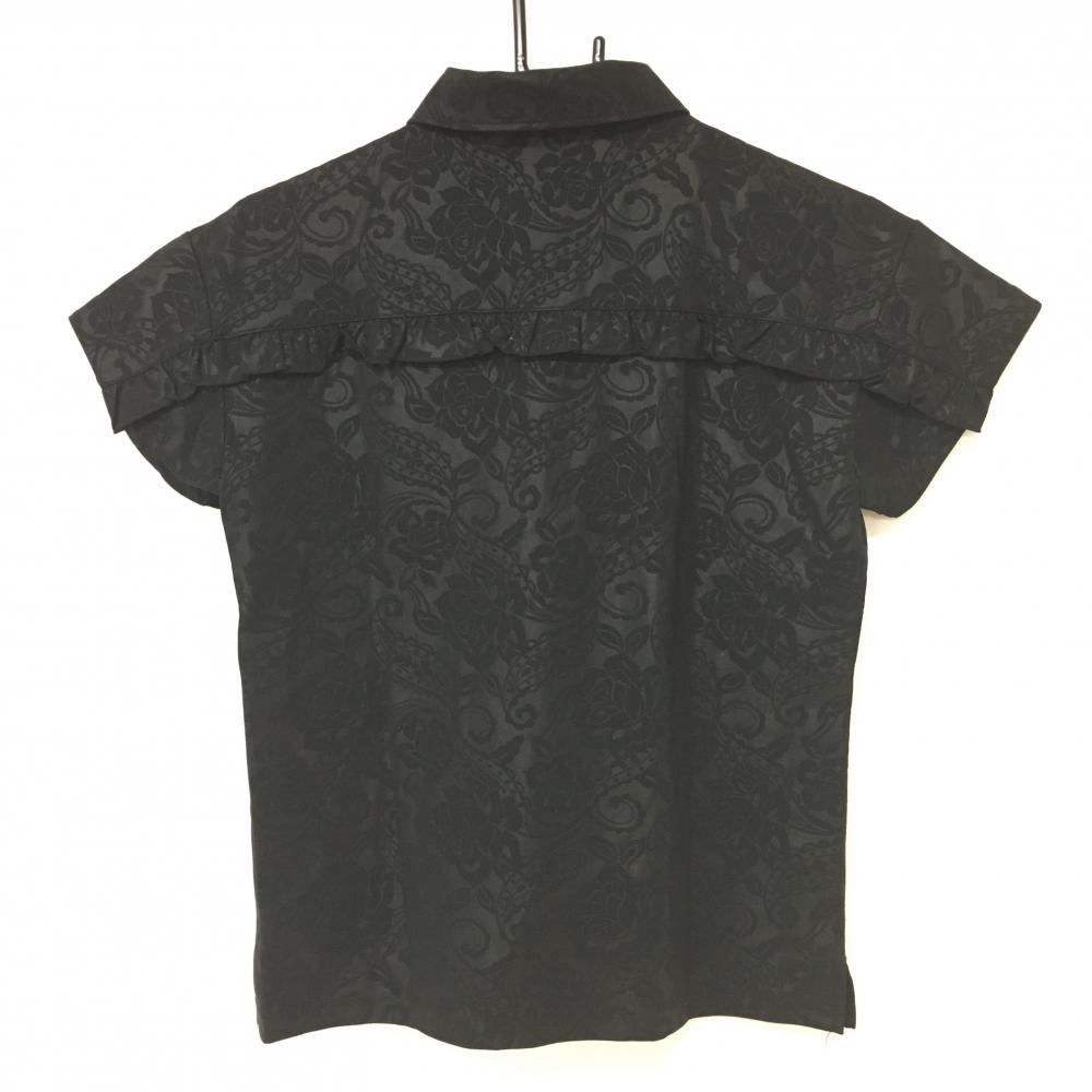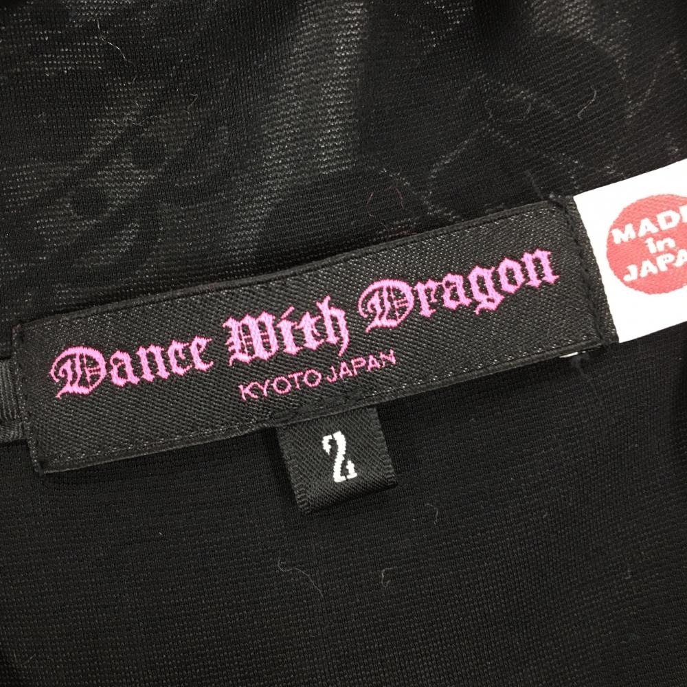 【超美品】ダンスウィズドラゴン 半袖ポロシャツ 黒 花柄 スカル スパンコール 襟2WAY レディース 2(M) ゴルフウェア Dance With Dragon