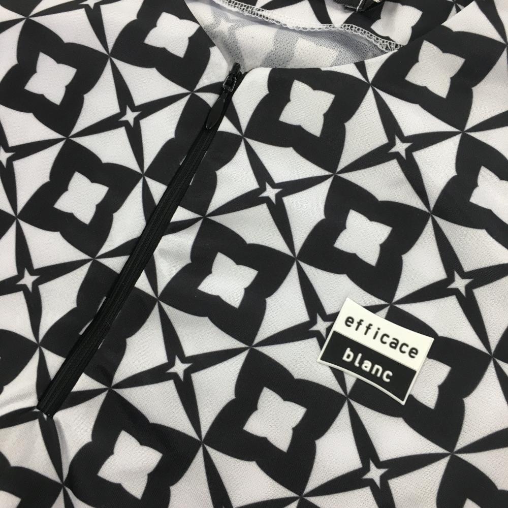 【新品】エフィカスブラン 半袖ワンピース 白×黒 総柄 ハーフジップ インナーパンツ付 レディース L ゴルフウェア efficace