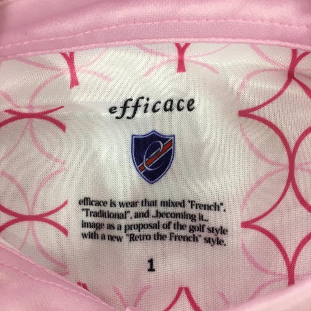【新品】エフィカス 半袖ポロシャツ 白×ピンク 総柄 リングジオメトリック レディース S ゴルフウェア efficace