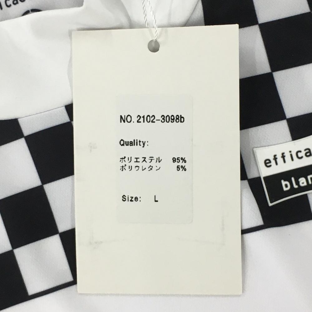【新品】エフィカス 半袖ハイネックシャツ 白×黒 肩ブロックチェック レディース M ゴルフウェア efficace