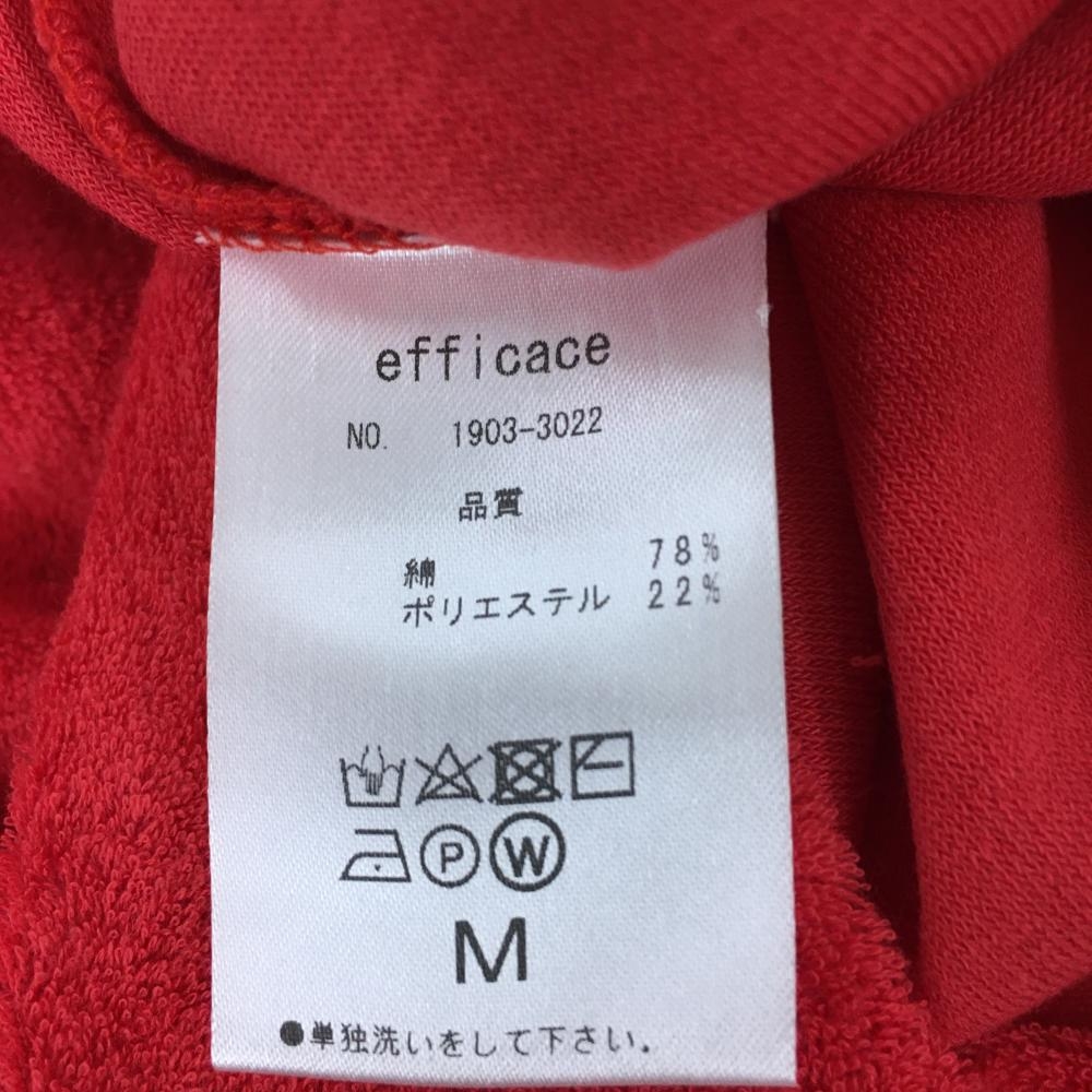 【新品】エフィカス 半袖スキッパーシャツ レッド×ライトブルー パイル地 フロントワッペン レディース M ゴルフウェア efficace