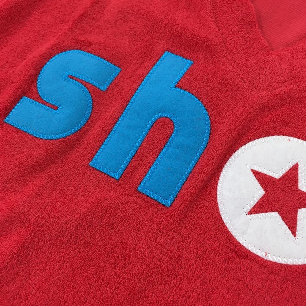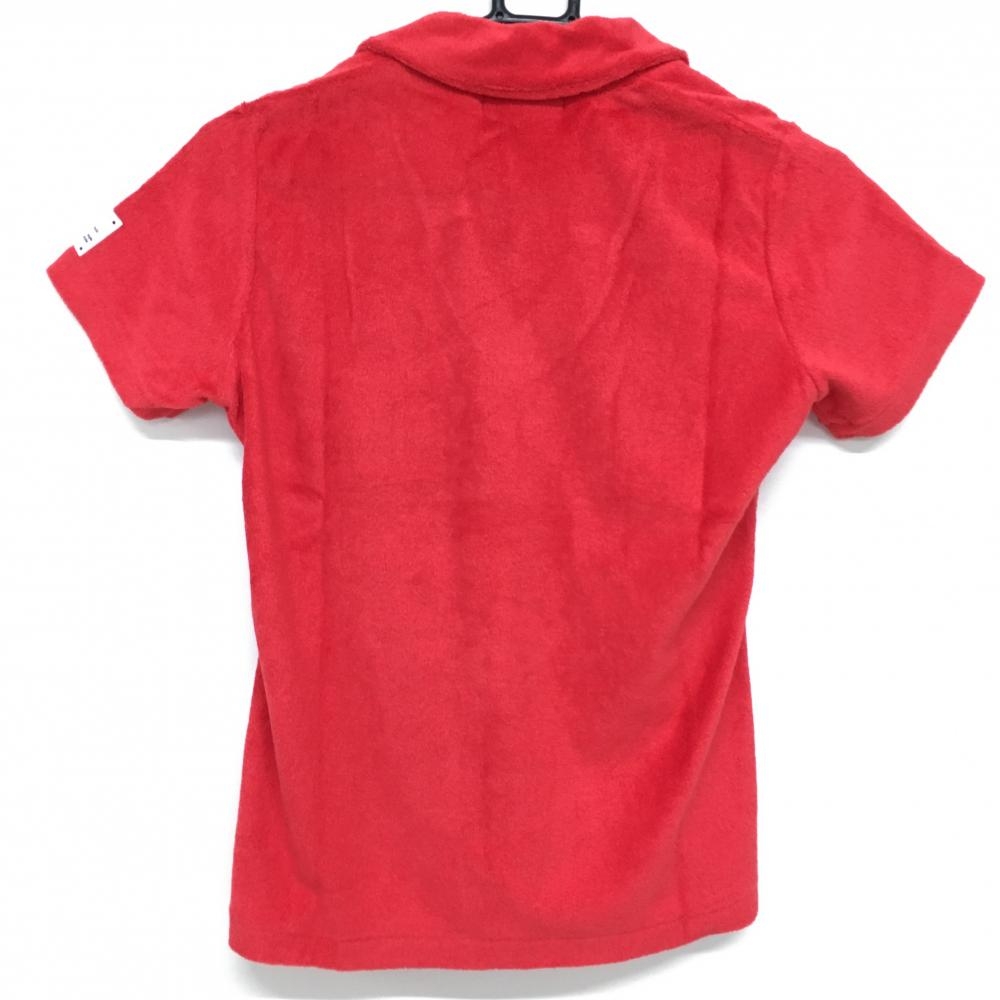 【新品】エフィカス 半袖スキッパーシャツ レッド×ライトブルー パイル地 フロントワッペン レディース M ゴルフウェア efficace