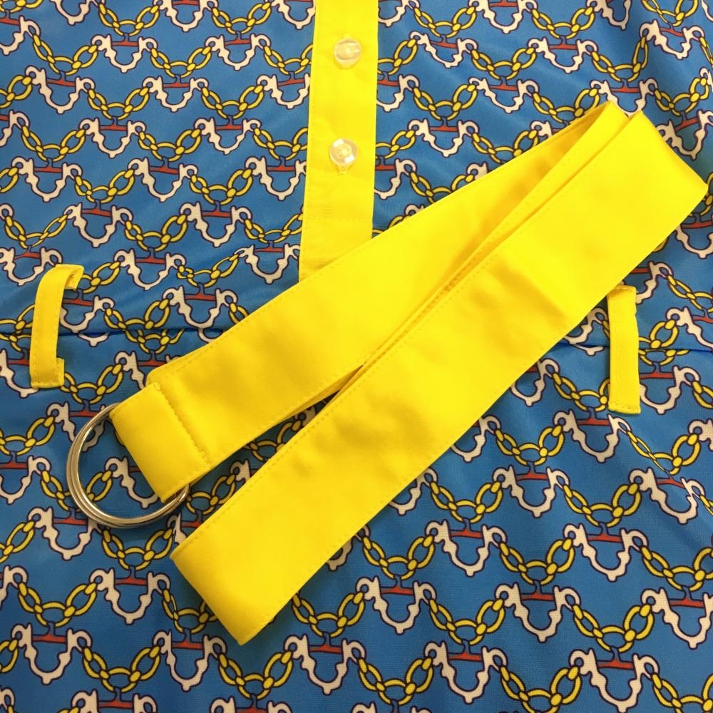 【新品】エフィカス ノースリーブワンピース ライトブルー×イエロー マリンチェーン柄 レディース M ゴルフウェア efficace