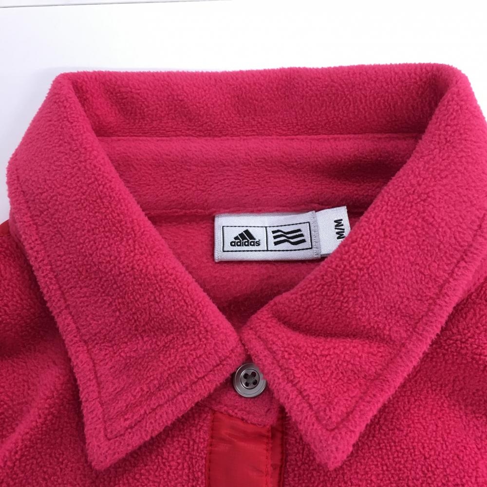 アディダス 半袖ポロシャツ ピンク×レッド フリース地 胸ポケット レディース M/M ゴルフウェア adidas