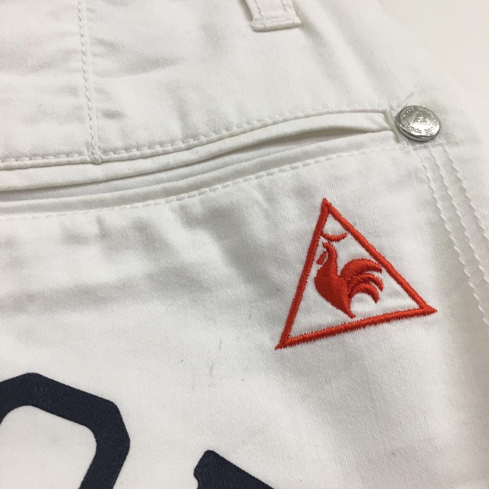 【美品】ルコック スカート 白×ネイビー バックプリント ティー装着可 内側インナーパンツ レディース 7 ゴルフウェア le coq sportif