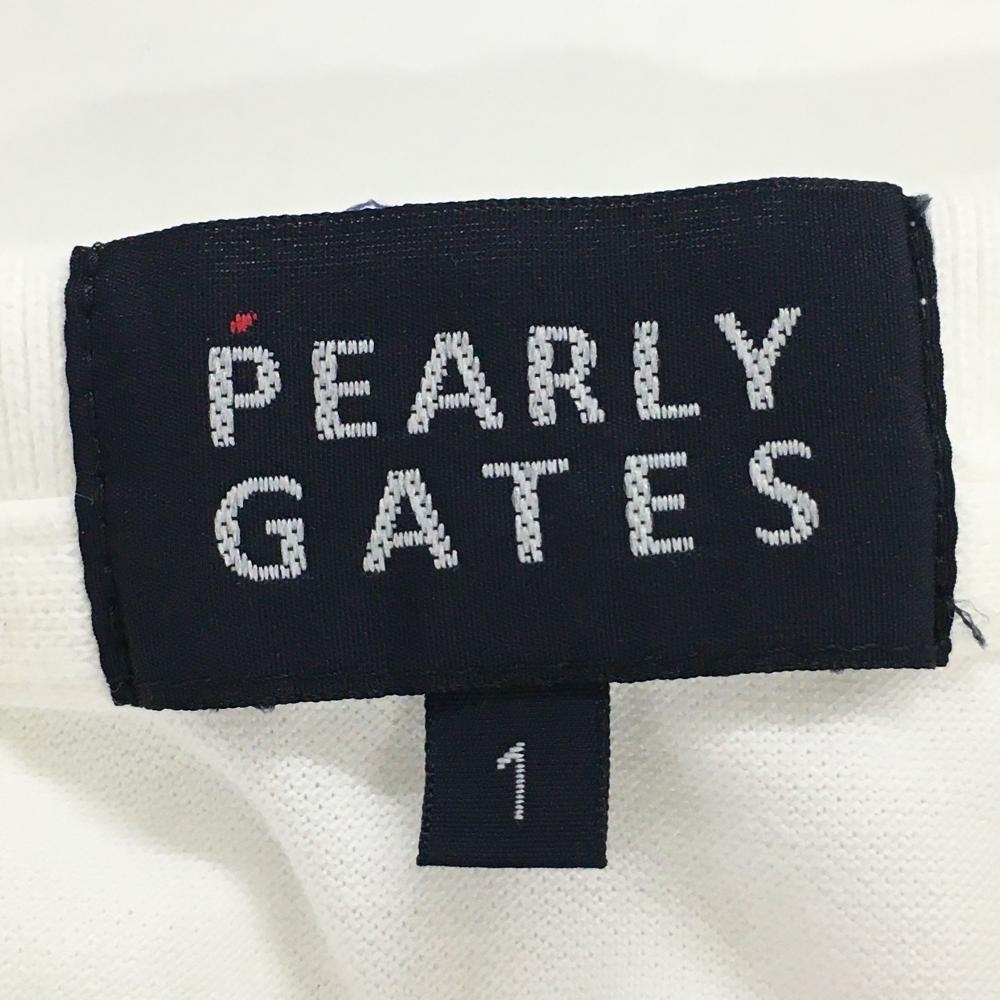 パーリーゲイツ 半袖ポロシャツ 白×ネイビー 襟裏カート柄 日本製 レディース 1(M) ゴルフウェア PEARLY GATES