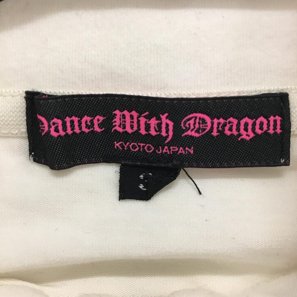【美品】ダンスウィズドラゴン 長袖ハイネックシャツ 白 表微起毛 ハーフジップ レディース 3(L) ゴルフウェア Dance With Dragon