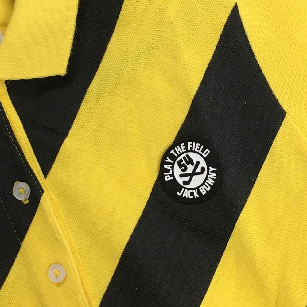 ジャックバニー 半袖ポロシャツ イエロー×黒 一部斜めボーダー レディース 1(M) ゴルフウェア Jack Bunny