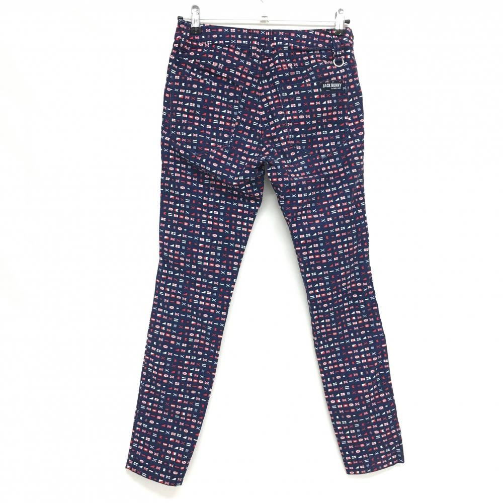 【美品】ジャックバニー パンツ ネイビー×レッド 国旗柄 レディース 0(S) ゴルフウェア Jack Bunny