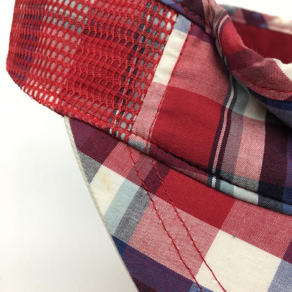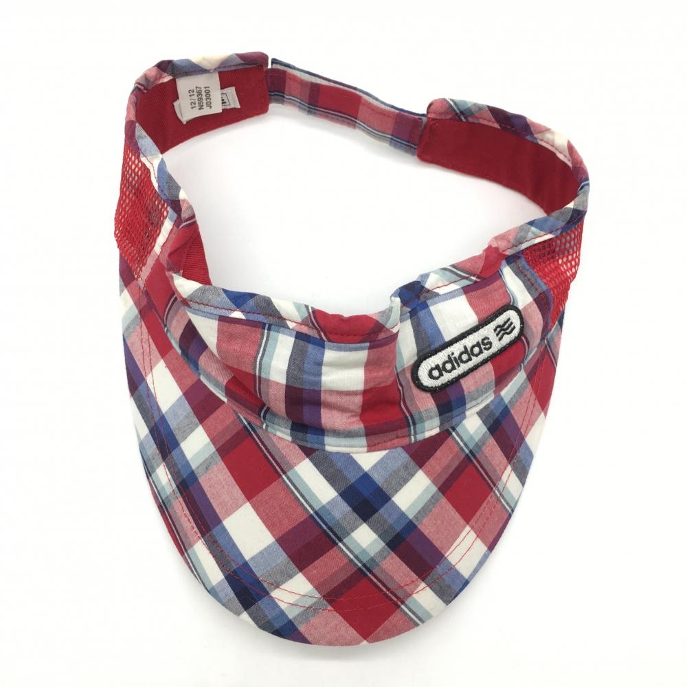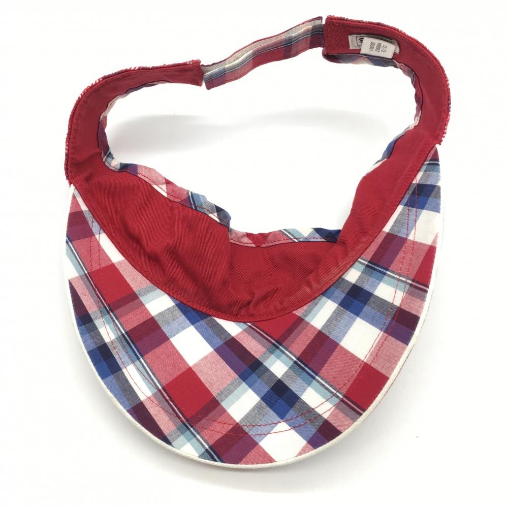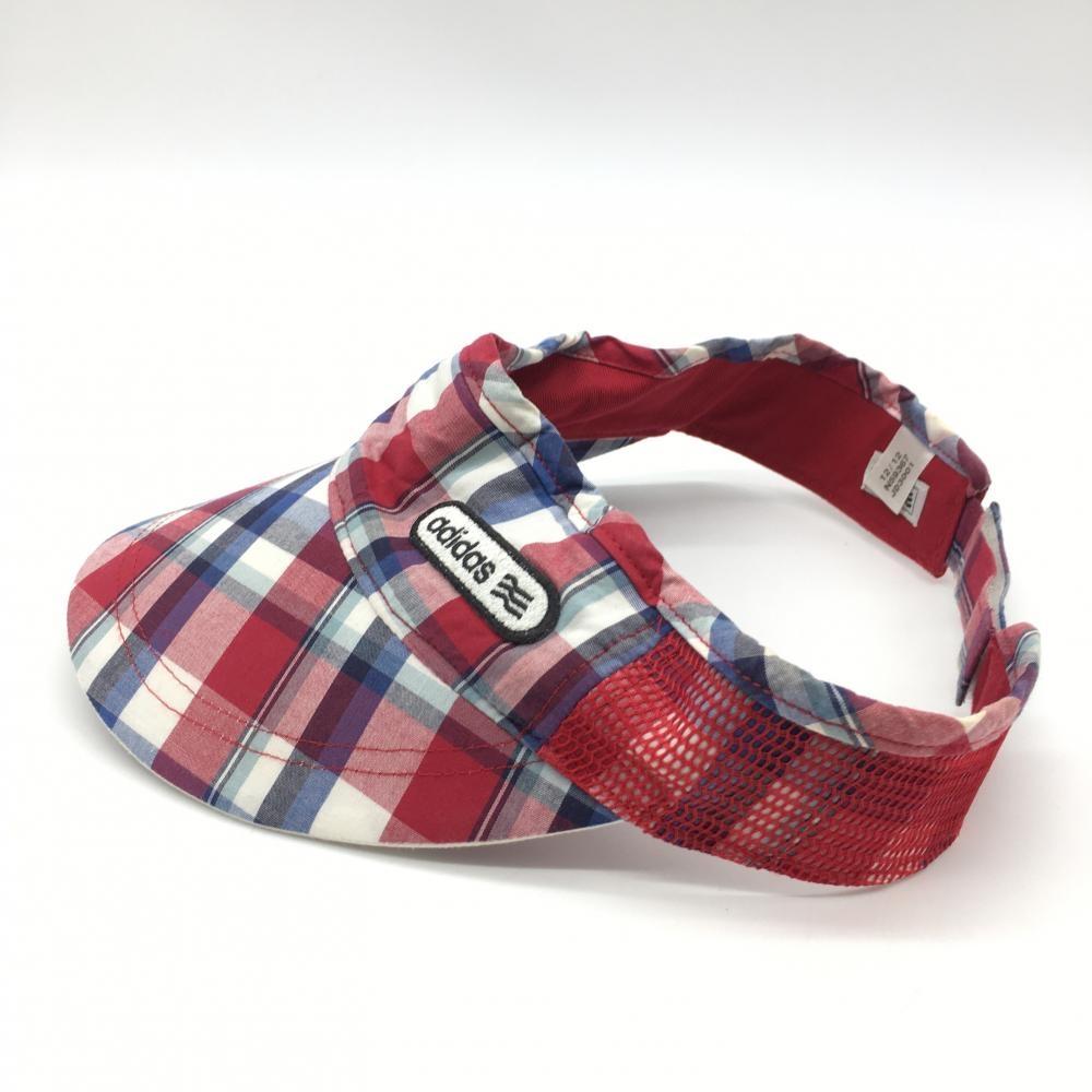 アディダス サンバイザー ボルドー×白 チェック柄 ロゴワッペン 額うす汚れ F ゴルフウェア adidas