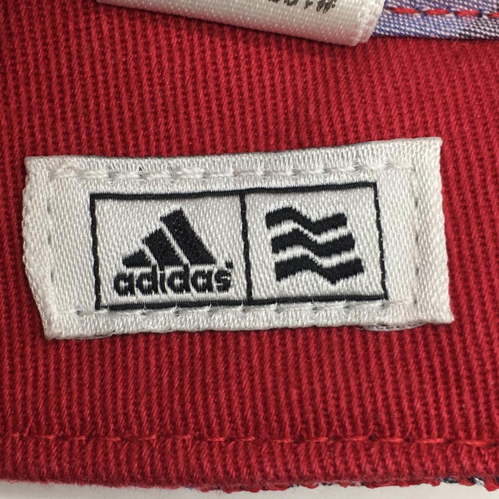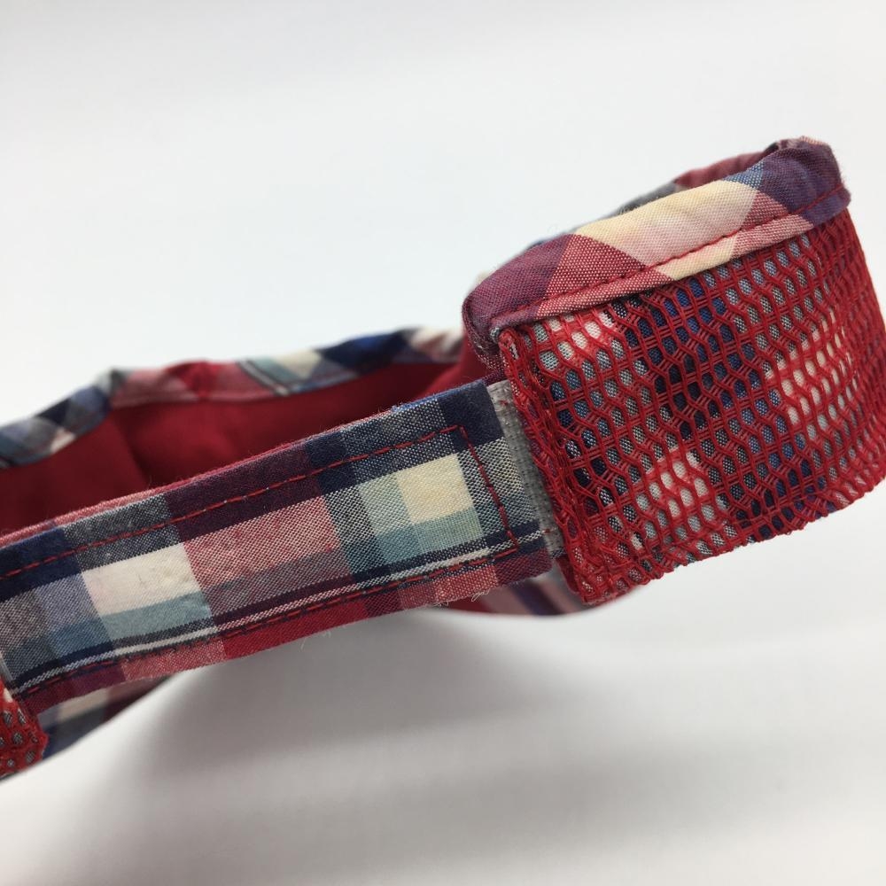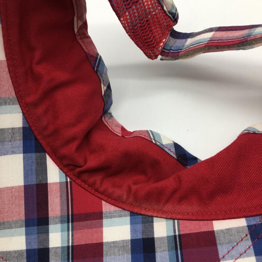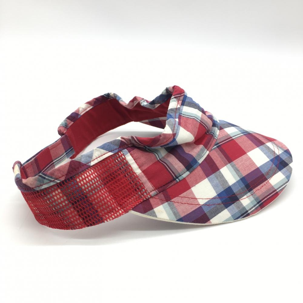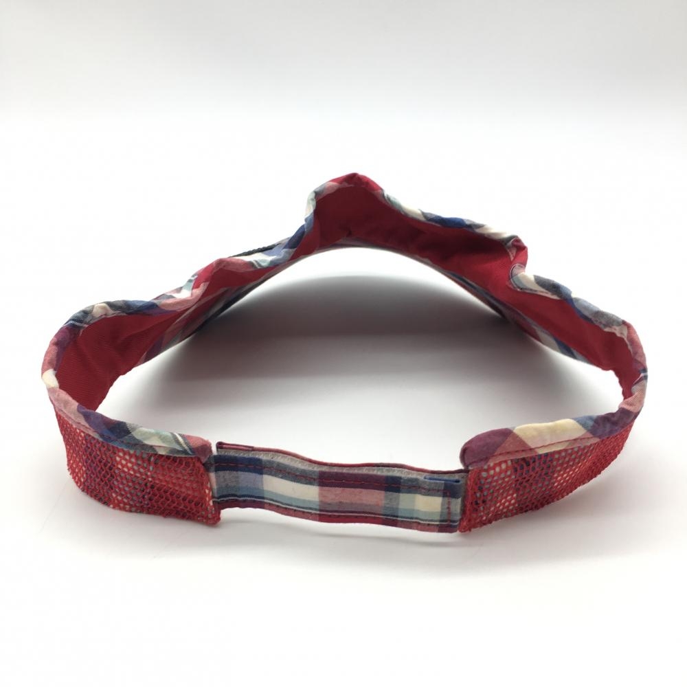 アディダス サンバイザー ボルドー×白 チェック柄 ロゴワッペン 額うす汚れ F ゴルフウェア adidas