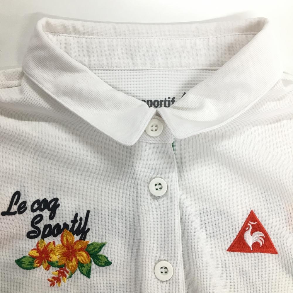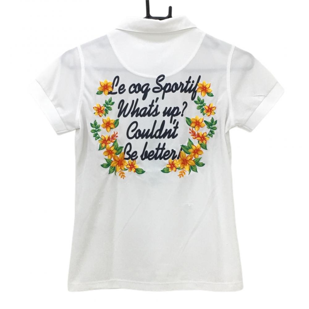 ルコック 半袖ポロシャツ 白×ネイビー バックプリント 花刺しゅう レディース M ゴルフウェア le coq sportif