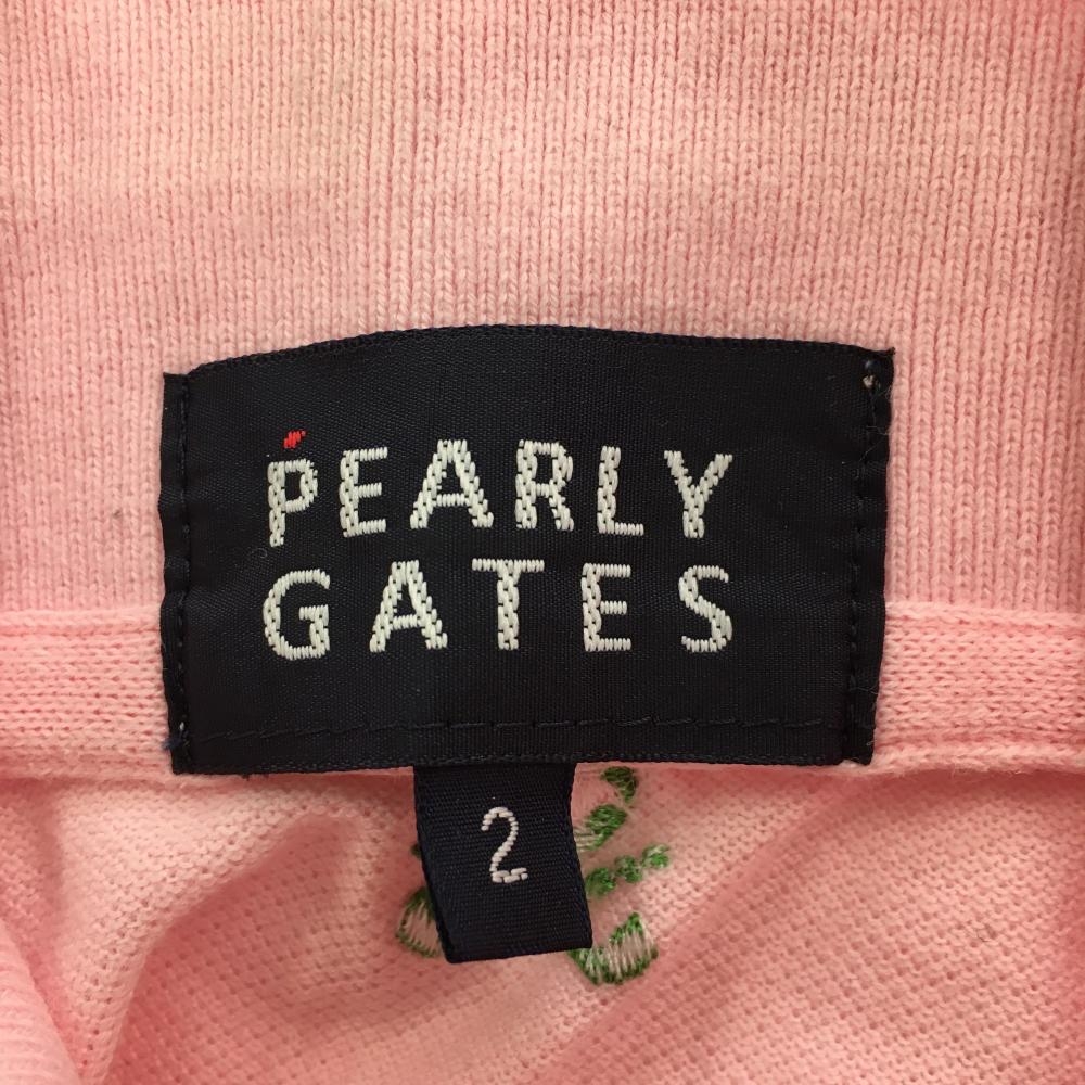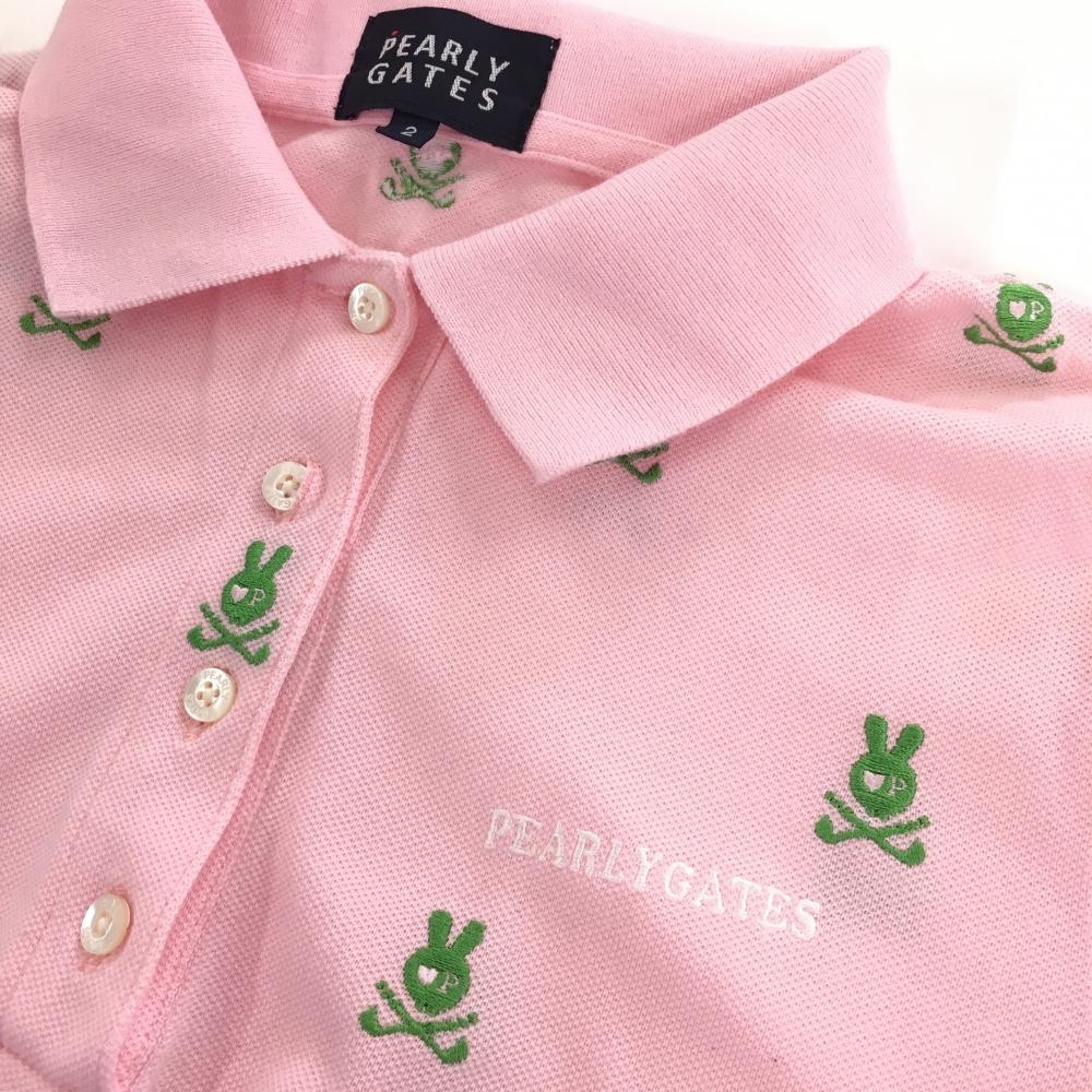 【美品】パーリーゲイツ 半袖ポロシャツ ピンク×グリーン スカルラビット総柄刺しゅう レディース 2(L) ゴルフウェア PEARLY GATES