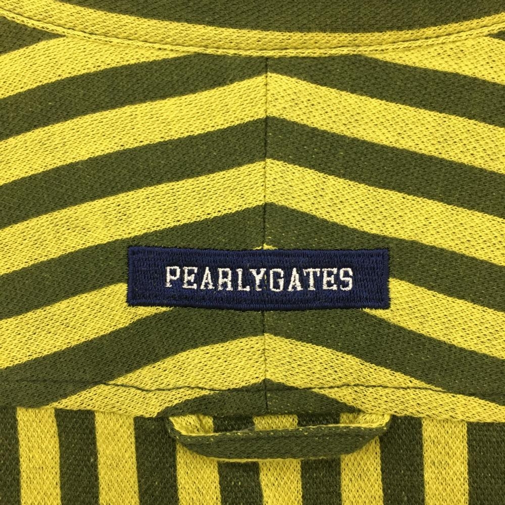 【美品】パーリーゲイツ 五分袖シャツ イエロー×カーキストライプ ボタンダウン レディース 0(S) ゴルフウェア PEARLY GATES