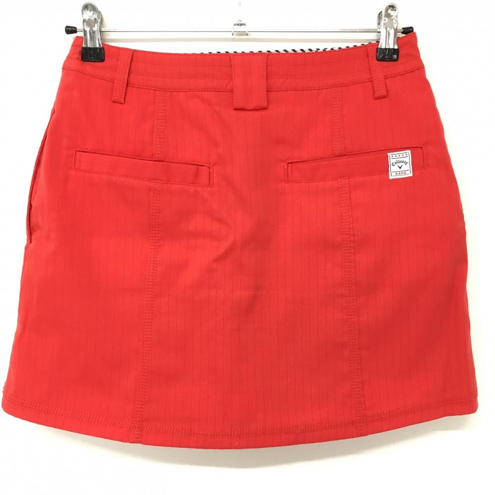 【美品】キャロウェイ スカート レッド×ネイビー ストライプ地模様 ロゴ刺しゅう レディース M ゴルフウェア Callaway