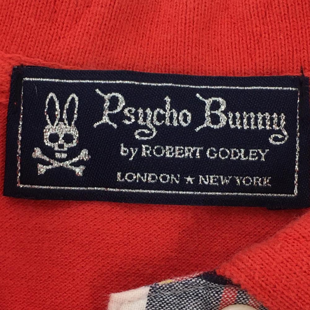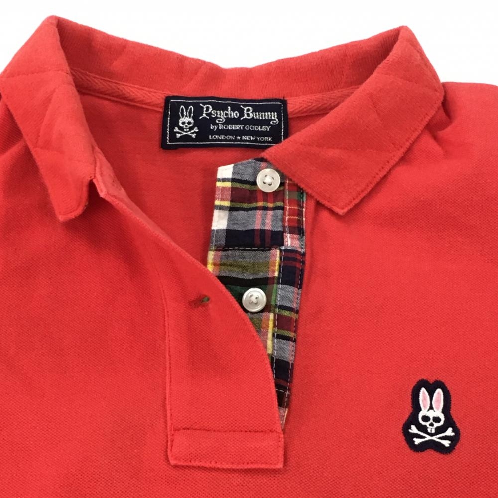 【美品】サイコバニー 半袖ポロシャツ レッド 襟裏チェック 綿100% レディース 1 ゴルフウェア Psycho Bunny