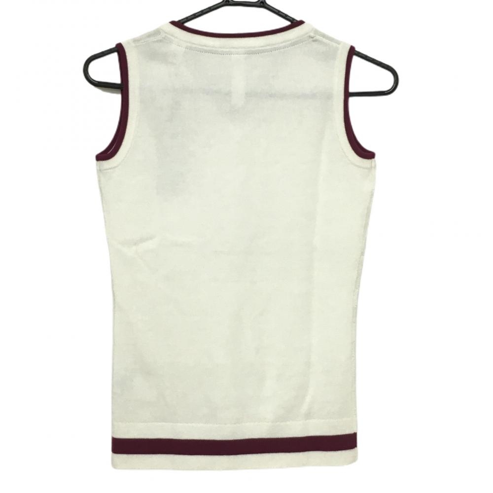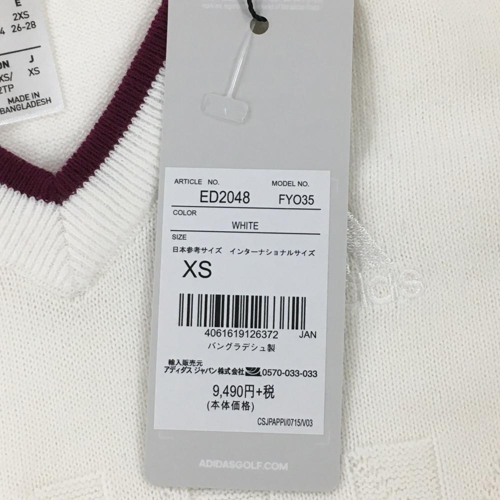 【新品】アディダス ニットベスト 白×ピンクパープル 前凹凸編み ウール混 Vネック レディース XS ゴルフウェア adidas