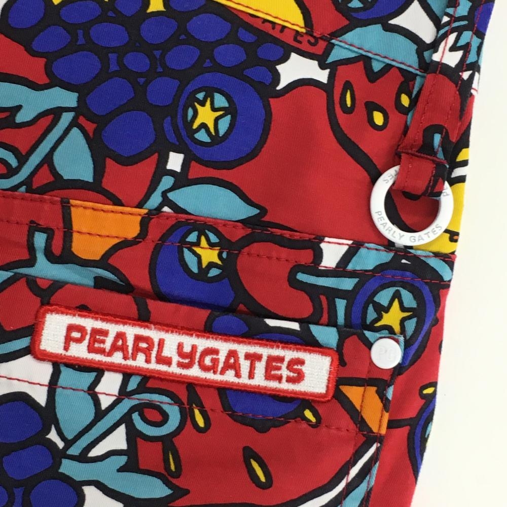 【美品】パーリーゲイツ パンツ レッド×パープル フルーツ柄 ストレッチ レディース 0(S) ゴルフウェア PEARLY GATES