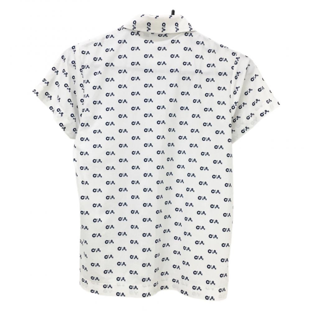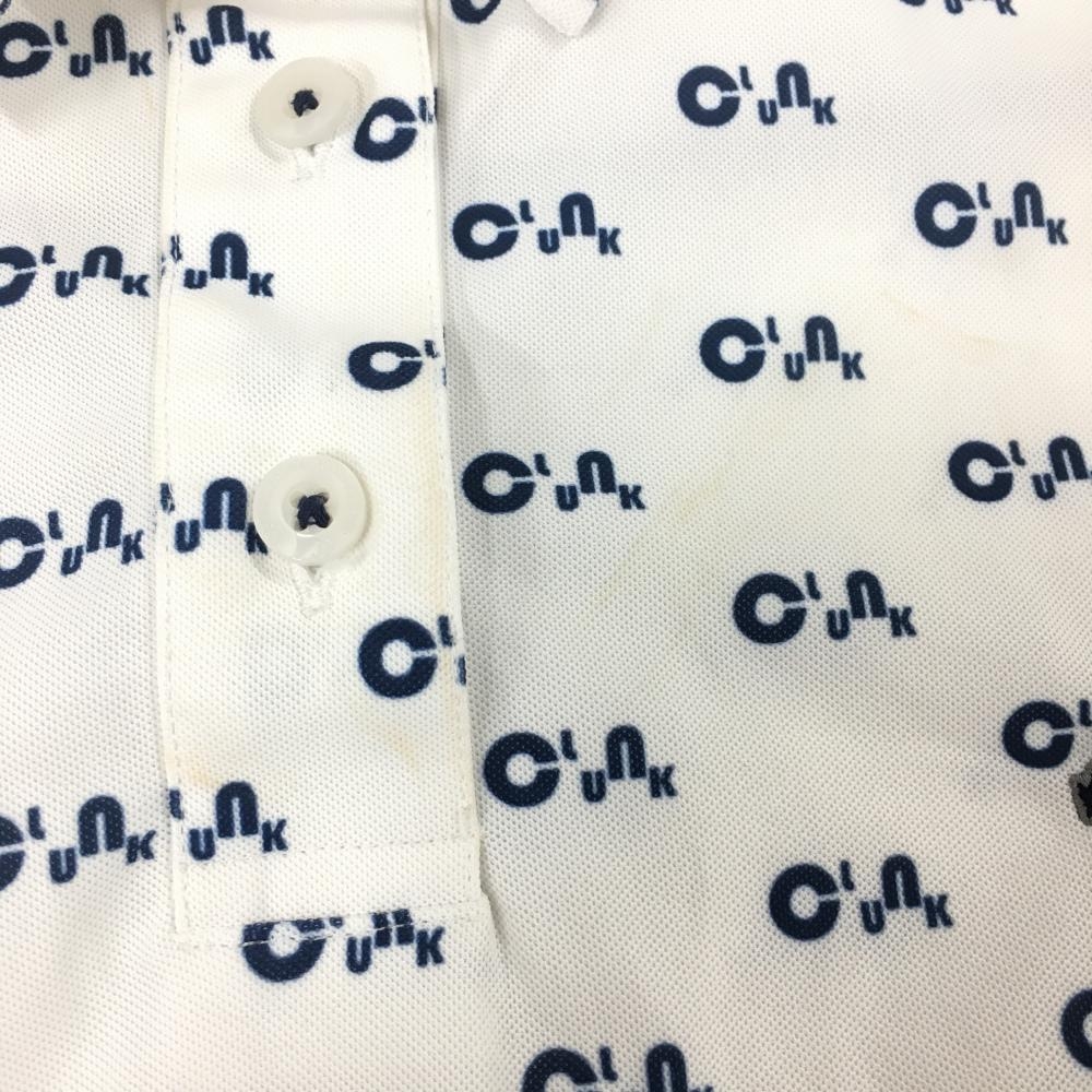 【美品】クランク 半袖ポロシャツ 白×ネイビー ロゴ柄 レディース M ゴルフウェア CLUNK