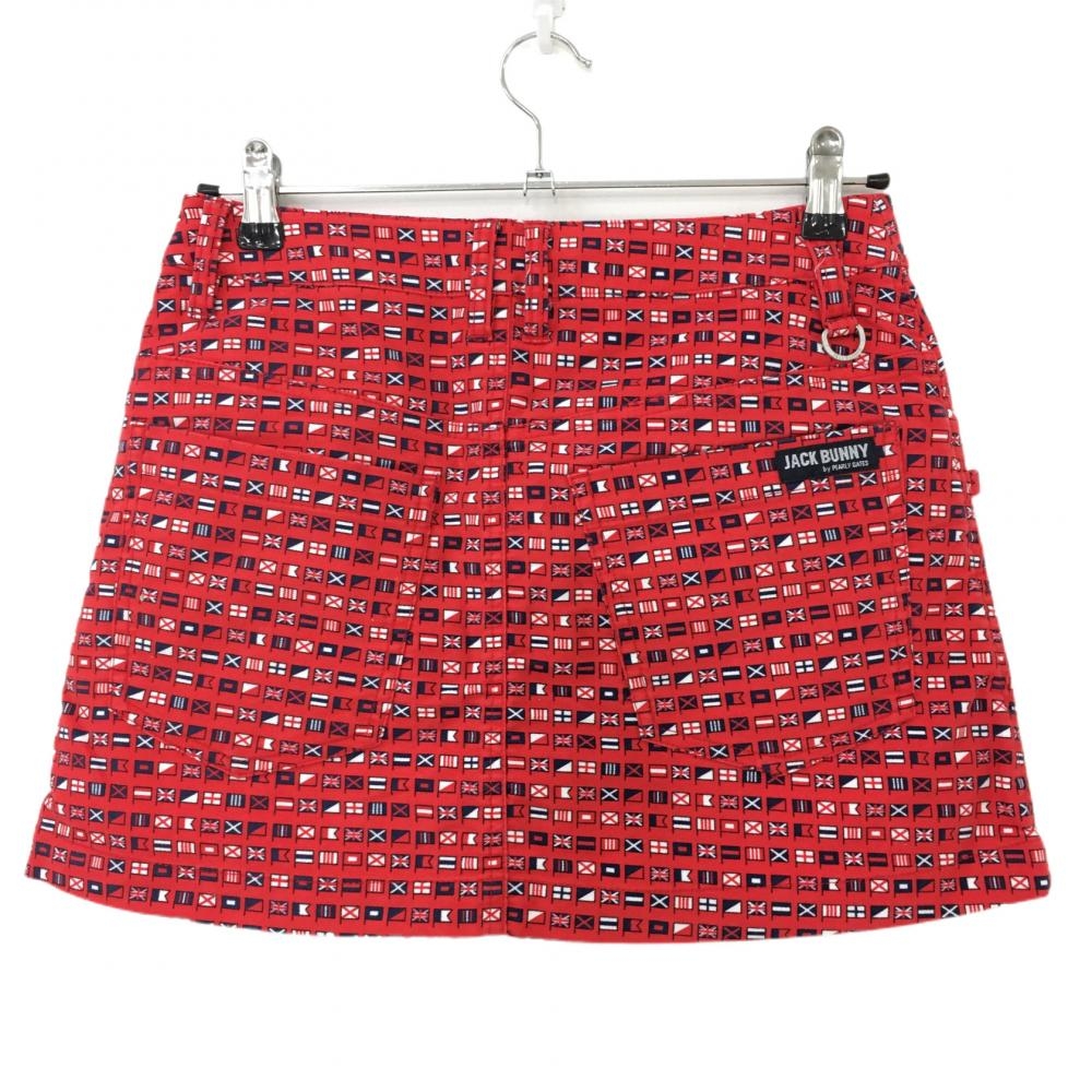 【超美品】ジャックバニー スカート レッド×ネイビー 旗総柄 内側インナーパンツ レディース 1(M) ゴルフウェア Jack Bunny