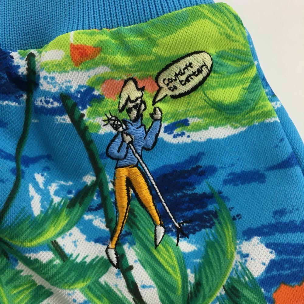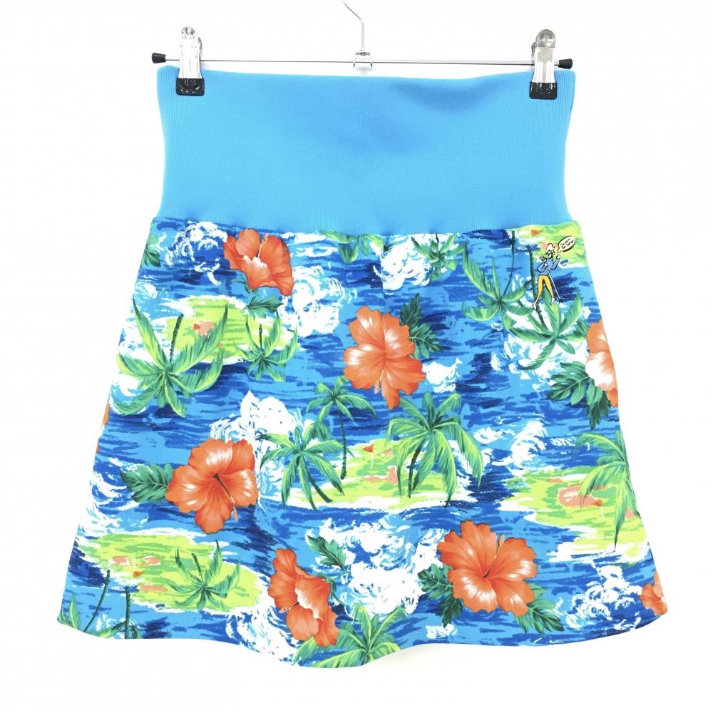 【超美品】ルコック スカート ライトブルー×オレンジ ハイビスカス柄 レディース 9 ゴルフウェア 2023年モデル le coq sportif