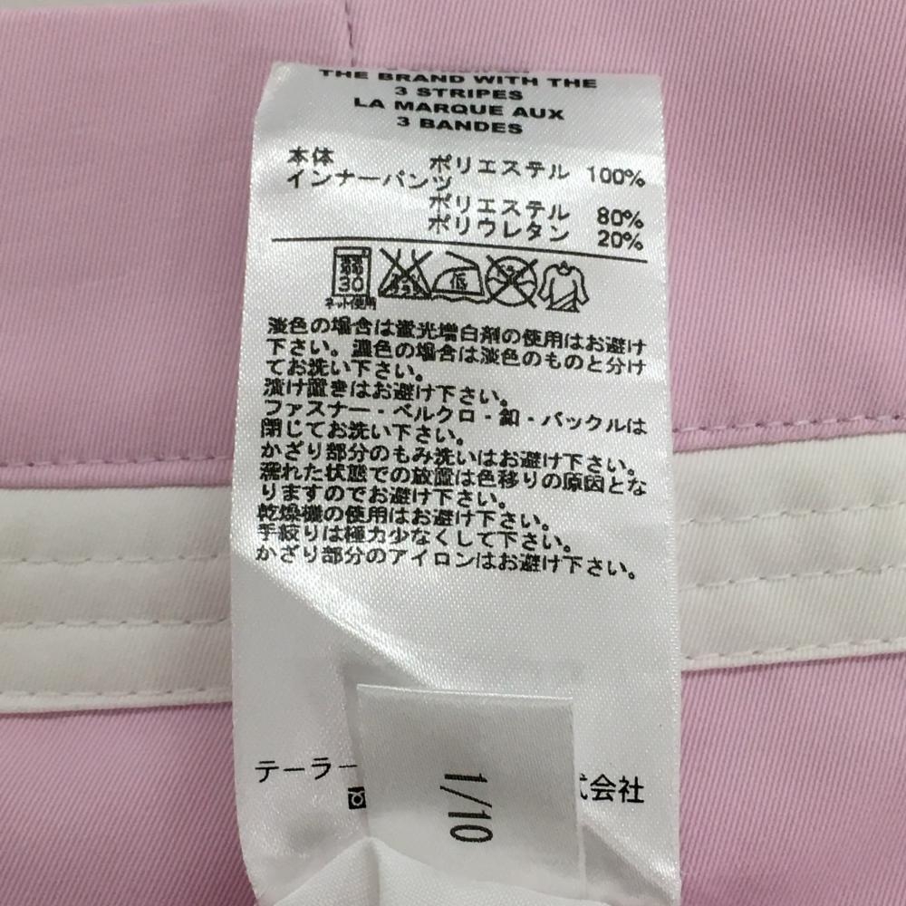 【超美品】アディダス スカート ピンク×白 ライン 裾スリット 内側インナーパンツ レディース S/P ゴルフウェア adidas