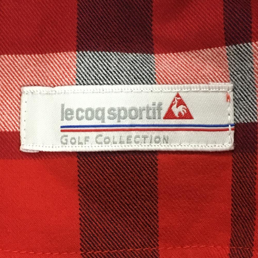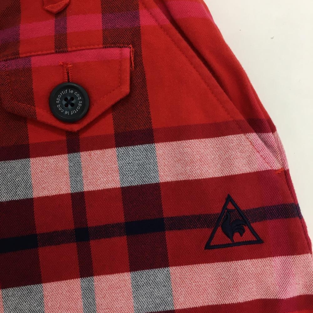 【超美品】ルコック スカート レッド×ネイビー チェック ロゴ刺しゅう ストレッチ レディース 7 ゴルフウェア le coq sportif