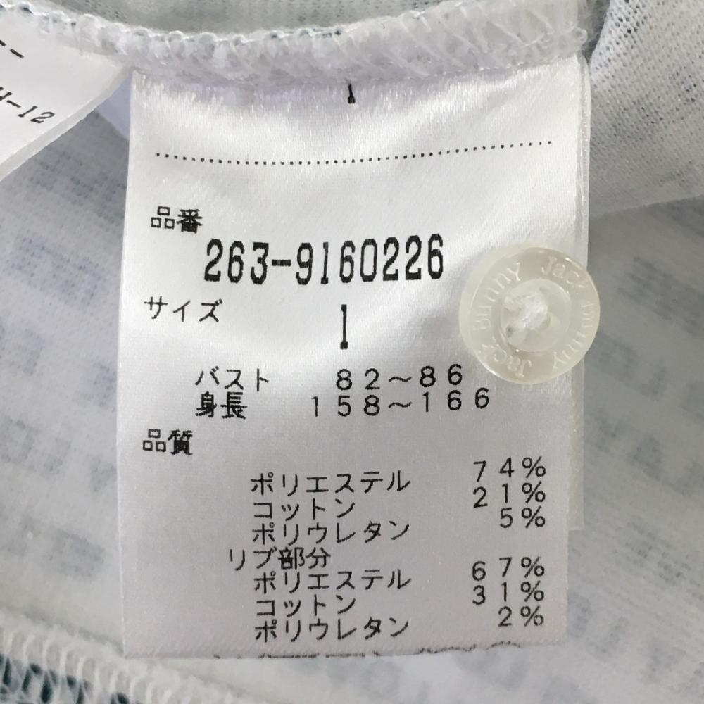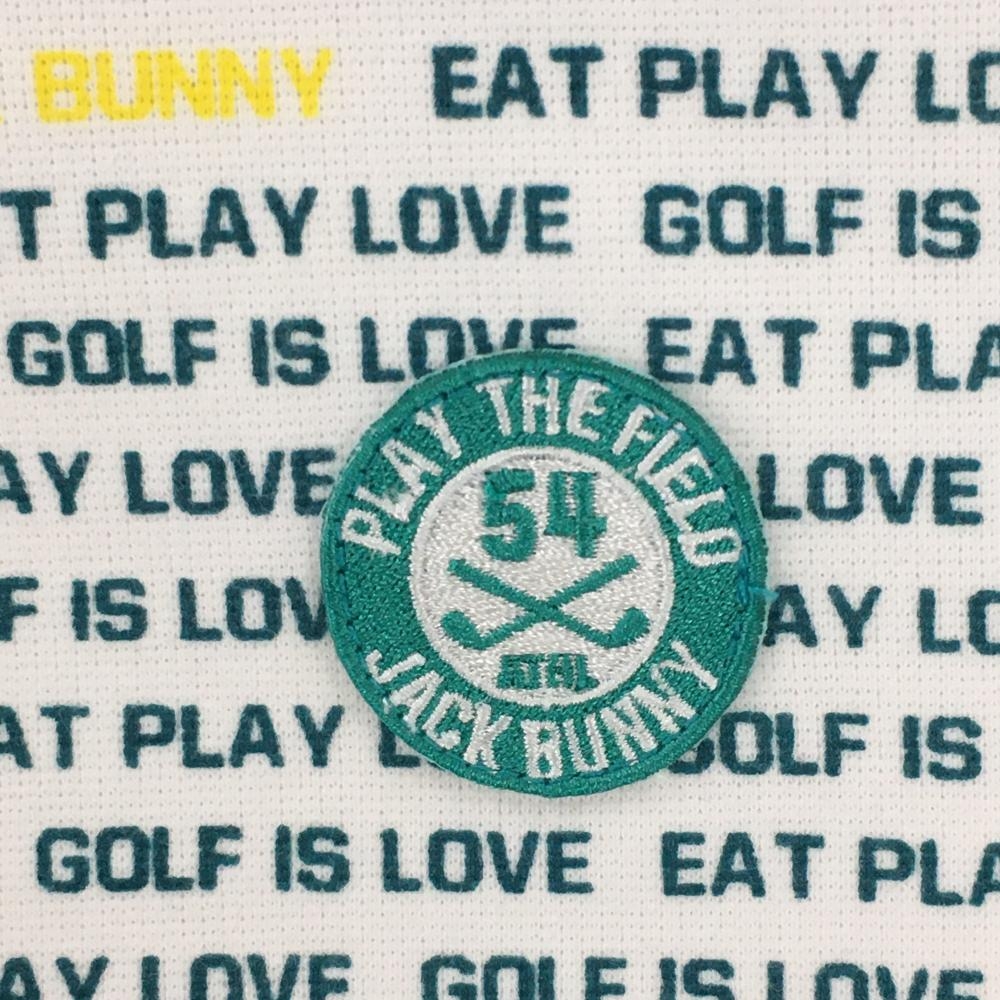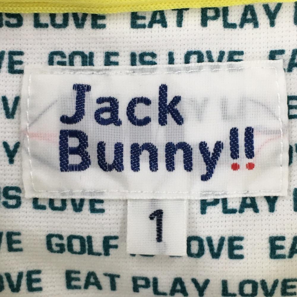 【超美品】ジャックバニー 半袖ポロシャツ 白×グリーン 英字総柄 ロゴワッペン レディース 1(M) ゴルフウェア Jack Bunny